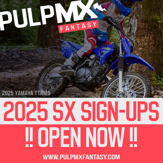 Welcome to PulpMX Fantasy, the premier destination for Monster Energy AMA Supercross and the AMA Pro Motocross Championship fantasy play and the ultimate way to enhance your race viewing experience! You're already going to watch the racing, so why not nerd out with us and have some fun?