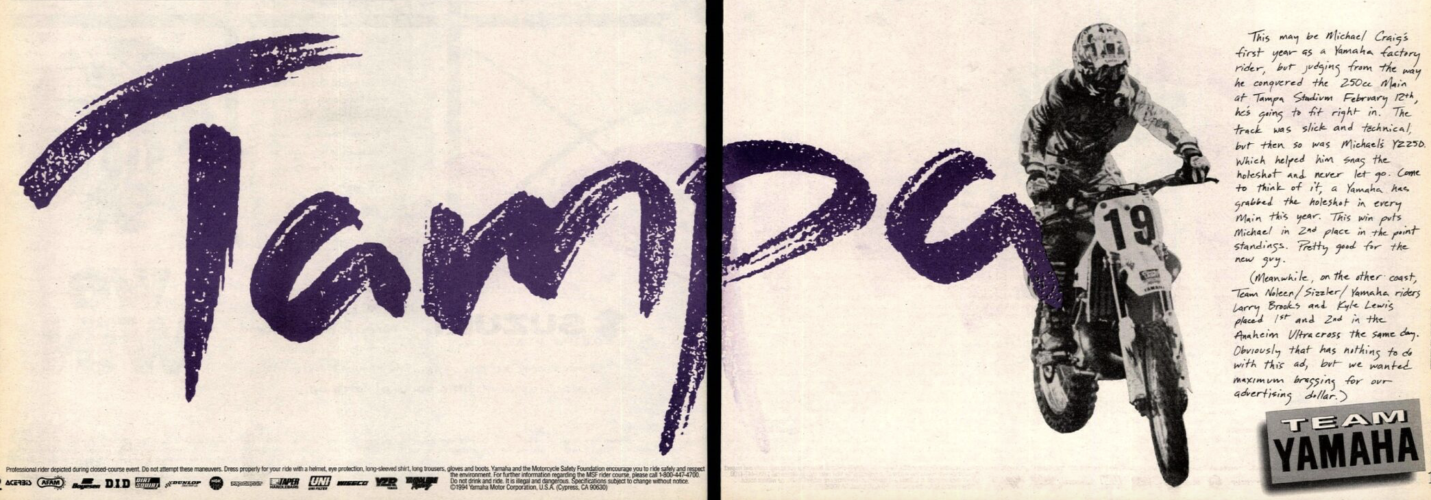 The biggest change was the end of the 500cc National Class, which ran for the last time in 1993, with Mike LaRocco as champion on the venerable Kawasaki KX500. Starting in 1986, the “big bike” classes of the AMA Nationals were split, with the 250 championship running for the first half of the season, then the 500s in the second half. With the Pro Motocross schedule generally featuring 12 rounds, this meant shorter, six-race championships for the 250s and 500s. (The 125 Nationals ran the entire schedule.) For ’94, the 250 Nationals would now run the entire 12-race calendar, from the Gatorback opener to the Steel City closer.