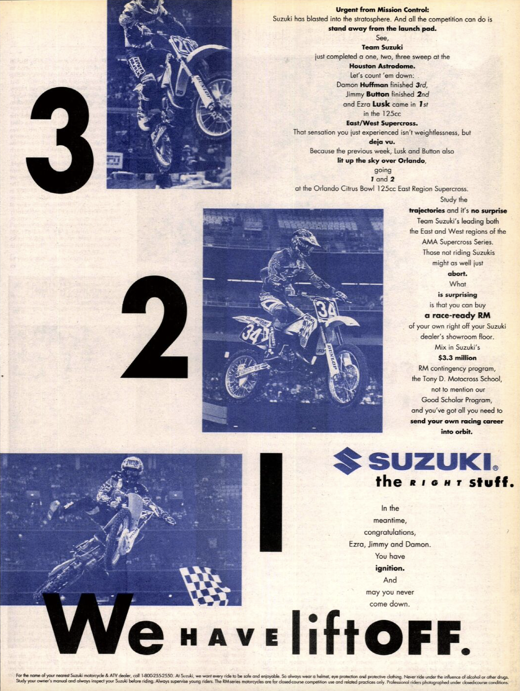 But there was a bigger point that would have an impact for years to come: Suzuki had stopped making an RM500 over a decade ago, and Yamaha’s air-cooled YZ490 was so uncompetitive the factory team didn’t bother to race the 500 Nationals anymore. Instead, those teams would just send their 250 riders down to the 125s for the second half of the nationals.