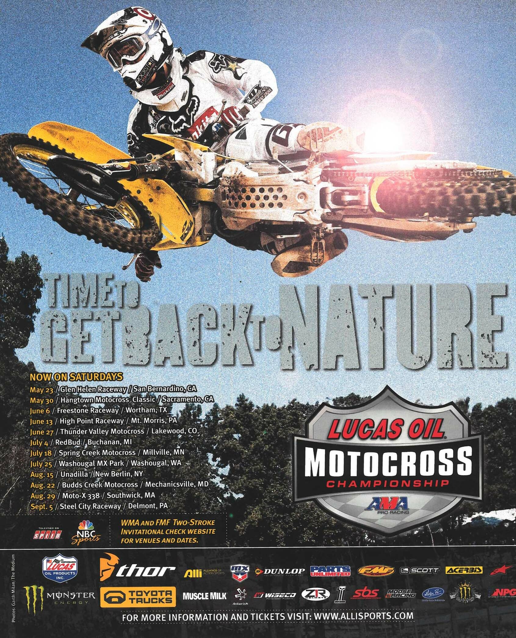 Also, with the Lucas Oil sponsorship came the name we now know: Lucas Oil AMA Pro Motocross Championship. And the class names from the previous few seasons, AMA Motocross and AMA Motocross Lites, were switched to 450 and 250.