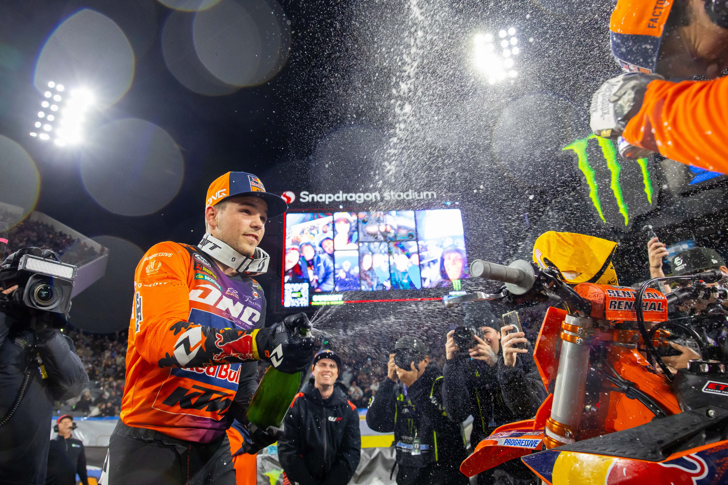 That final line proves a lot. Beaumer has unlocked his mid-week test track speed, which is huge, but even more significant that he can have that speed while being consistent. He didn't throw it away at A1 and settle for second. He waited out Davies in the early laps of San Diego. He didn't jump the big jump and focused on staying smart. How high in the ceiling for Beaumer? We will see if the pressure gets to him this weekend at the Anaheim 2 Supercross when he has the red backgrounds on his number plates first thing Saturday morning.