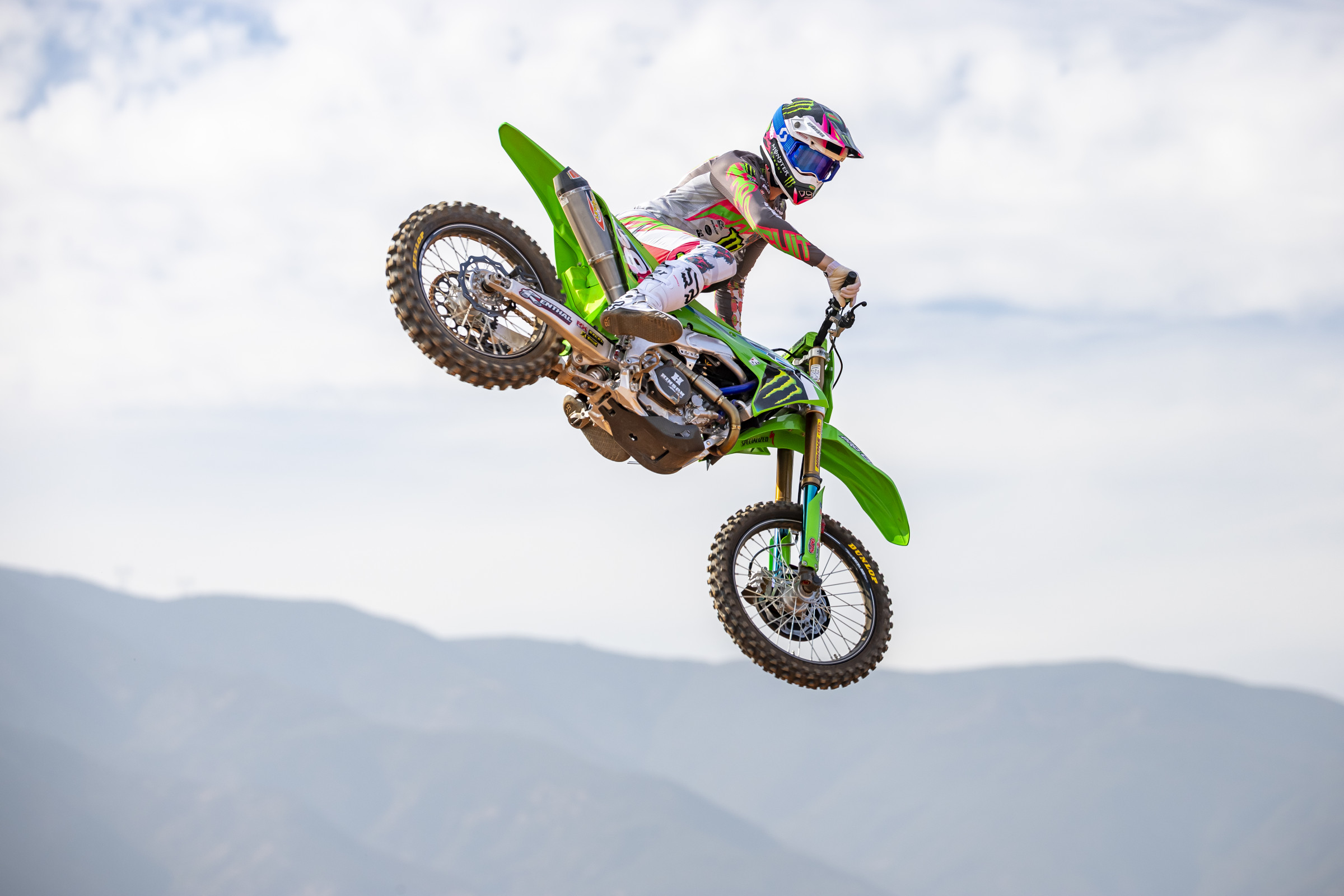 Adams has been on Kawasakis since 2019 and on a KX250 four-stroke full-time since the start of 2022. Then, he was just a fast, but tiny, kid on a big bike. Still, he was throwing huge whips! But in the last three years, the now 16-year-old got taller, put on some muscle, and really started showing what he could do. Although the youngest, he'll also be one of the biggest riders on the gate tonight.