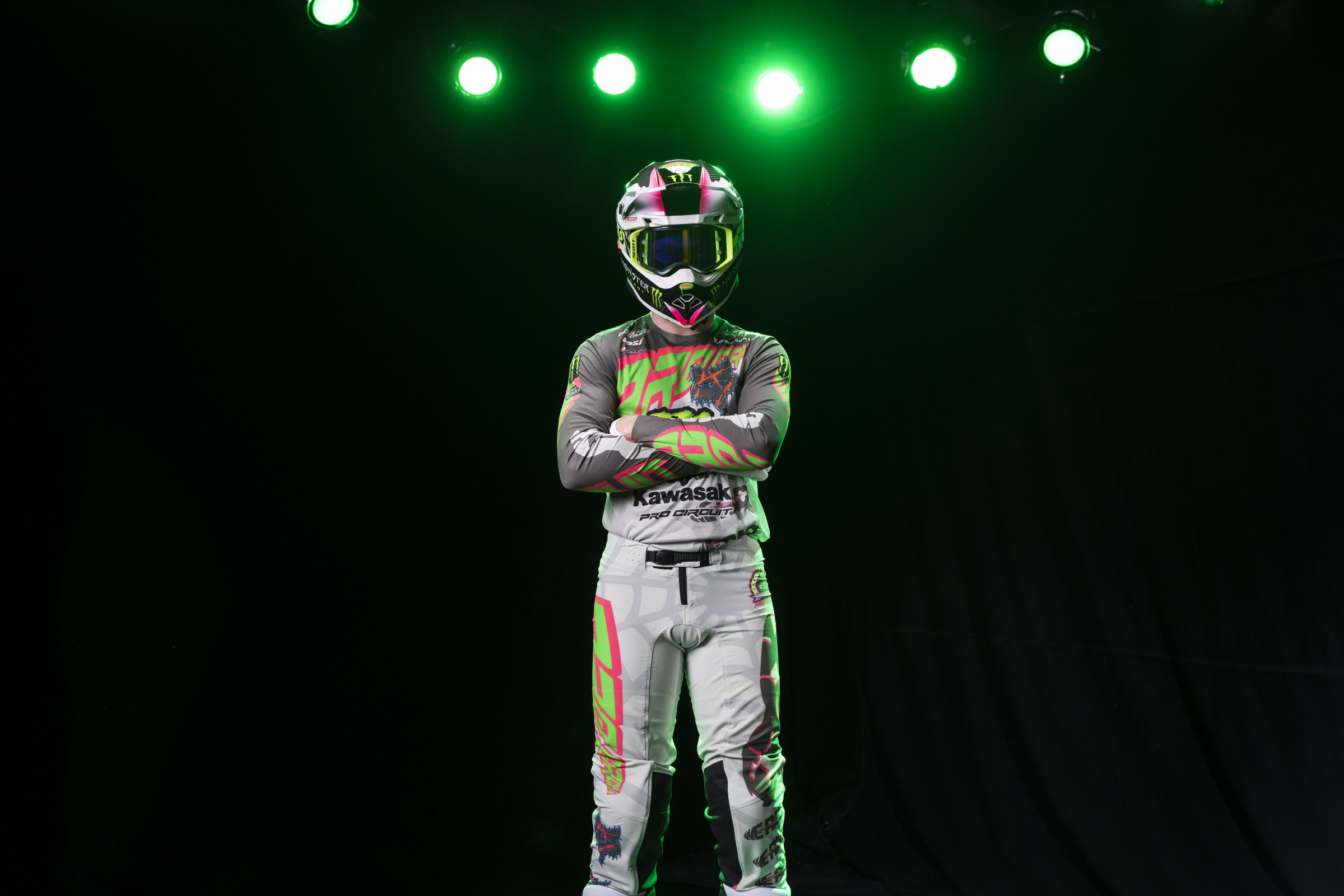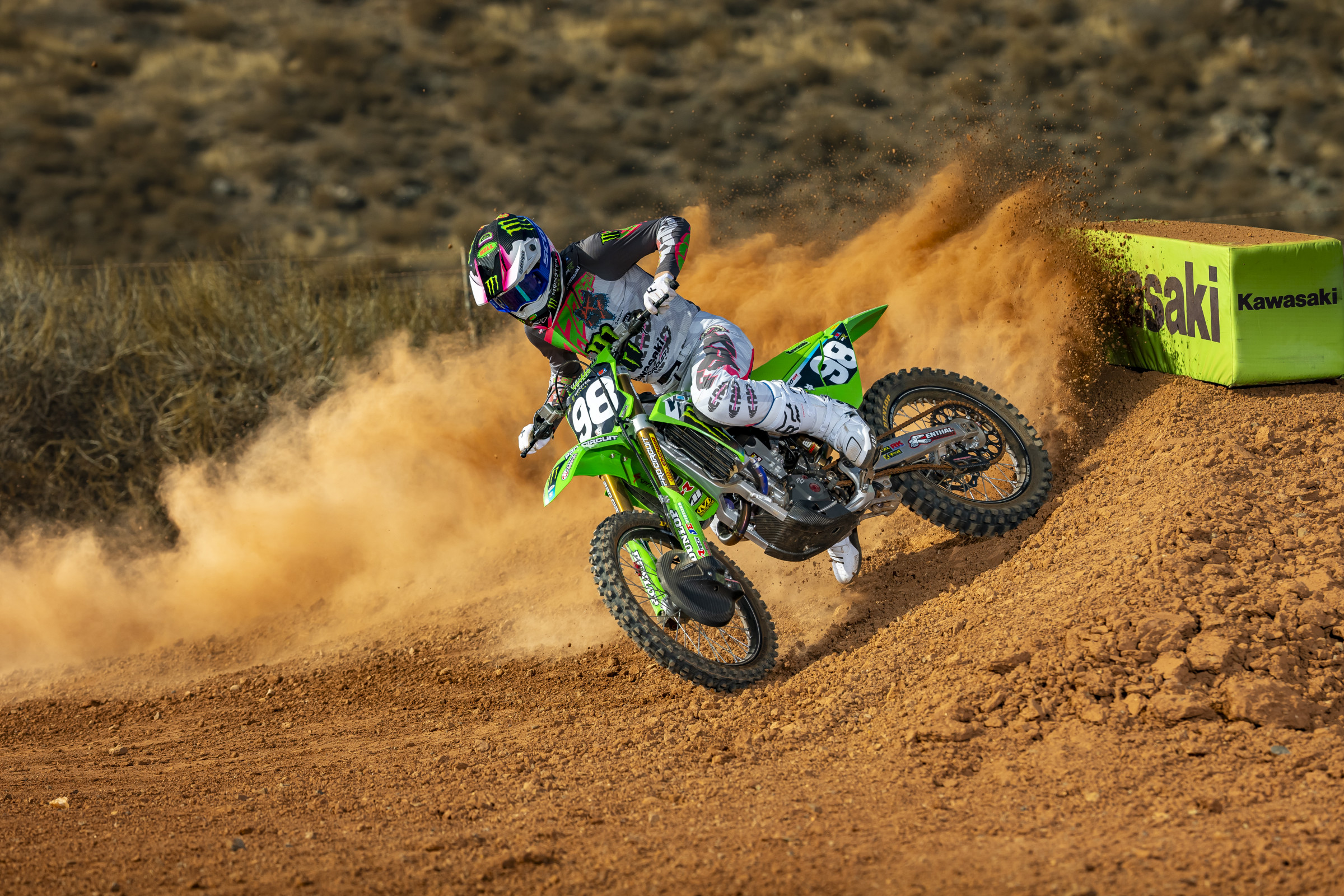 Adams had a break out year with the Team Green Kawasaki amateur program in 2024, first in the SX Futures. Adams finished 6-1-1-1 in the four SX Futures qualifying races before the championship-deciding main event finale in Utah last May. In the finale, he was leading before going down and eventually finishing second behind then-GasGas rider Cole Davies. After the race, we learned Adams had been under the weather and not operating at 100 percent. Still, Adams had proved he has skills on stadium racing.
