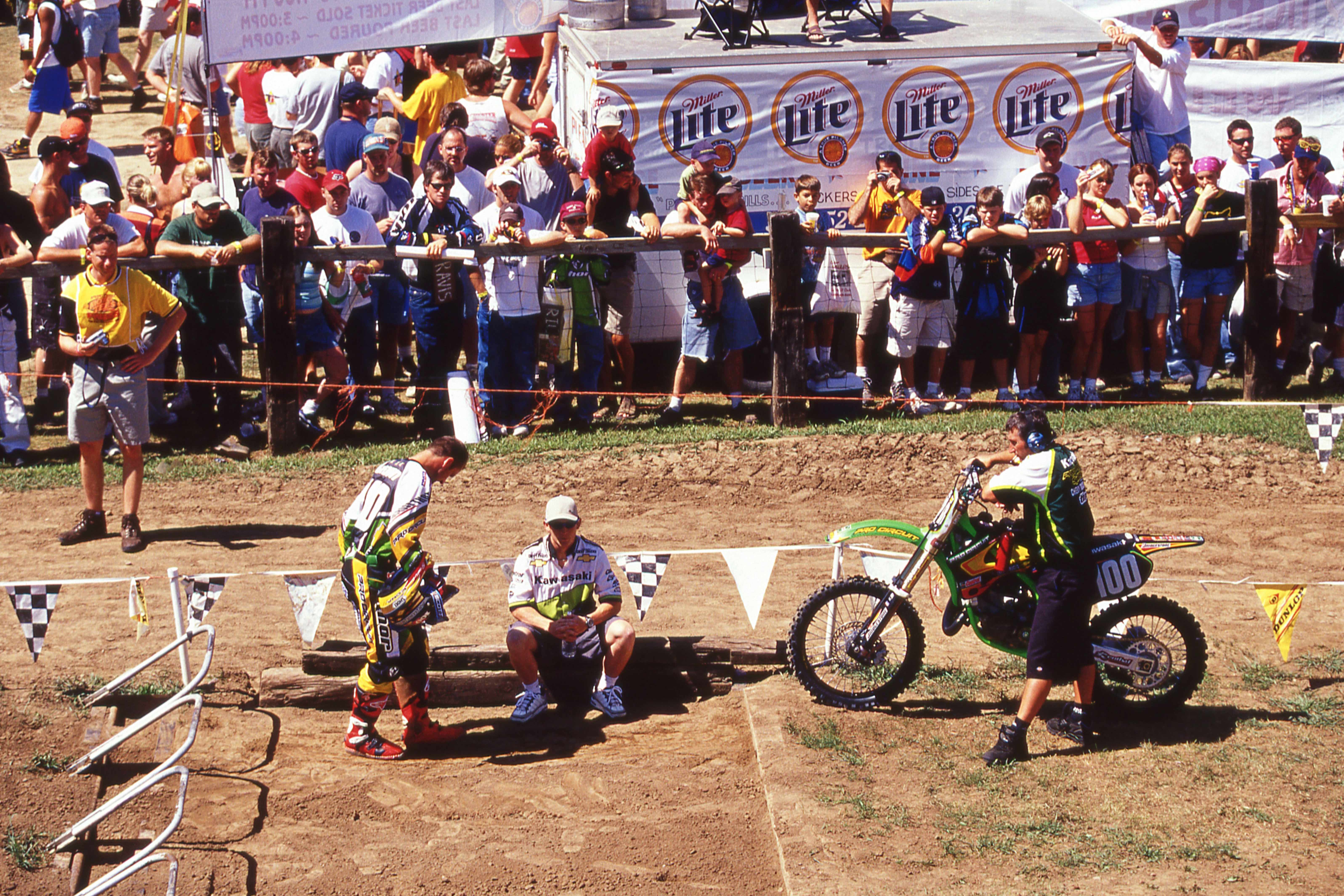 A new wrinkle in the title fight was introduced at the final round at Steel City, Pennsylvania, when it was announced that Ricky Carmichael, having clinched the 250MX title the previous week, would drop down to the 125 Class in order to break the all-time 125cc national win record held by Mark Barnett. The speculation ran rampant about RC having an ulterior motive to help out his buddy Brown, and if things weren’t already tense, this made it even more interesting.