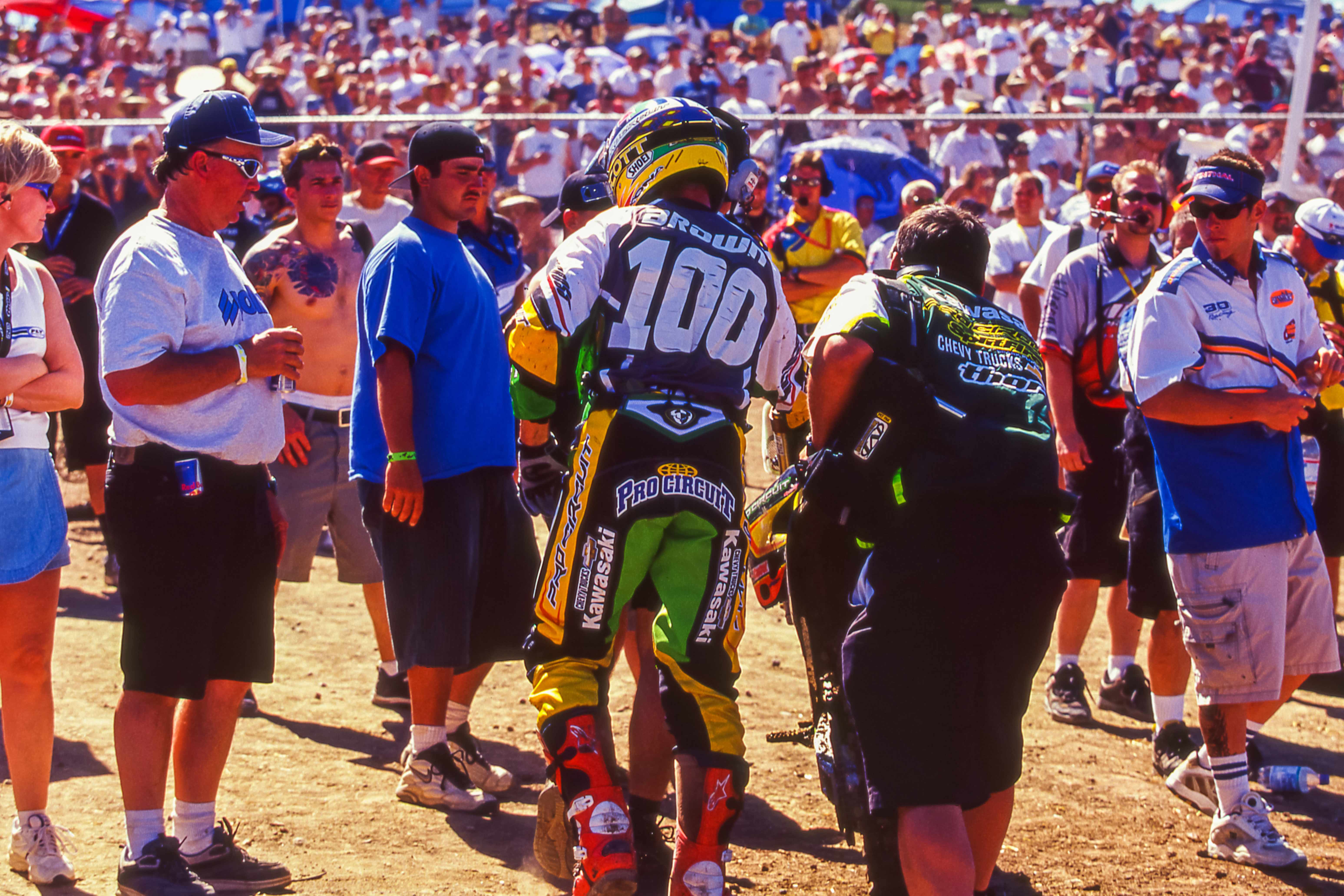 There was a couple of fun things about it, and then I remember when we got there, as funny as it is when you watch the shenanigans that have happened in the supercross series this year with people letting people by and team orders and all that kind of stuff, Duke [Finch from the AMA] come over there before the race and said straight up, “I’m going to be watching both of you. There better not be any team tactics. If there is I will take immediate action during the moto.” I’m like, whoa! Duke’s all, “Have you spoke to these guys about anything?” I said, “I honestly have not.” That’s the honest-to-God, on-the-Bible truth. You’ve got to do it on your own. All I said was, I had Ricky and Brownie and they were both just under the awning or whatever, and I said, “Hey, I don’t need to talk about anything. You guys know what you’re doing, right?” And they said, “Dude, we’re fine. We know what we’re doing.” And I said, “Okay.” I didn’t even talk about it.