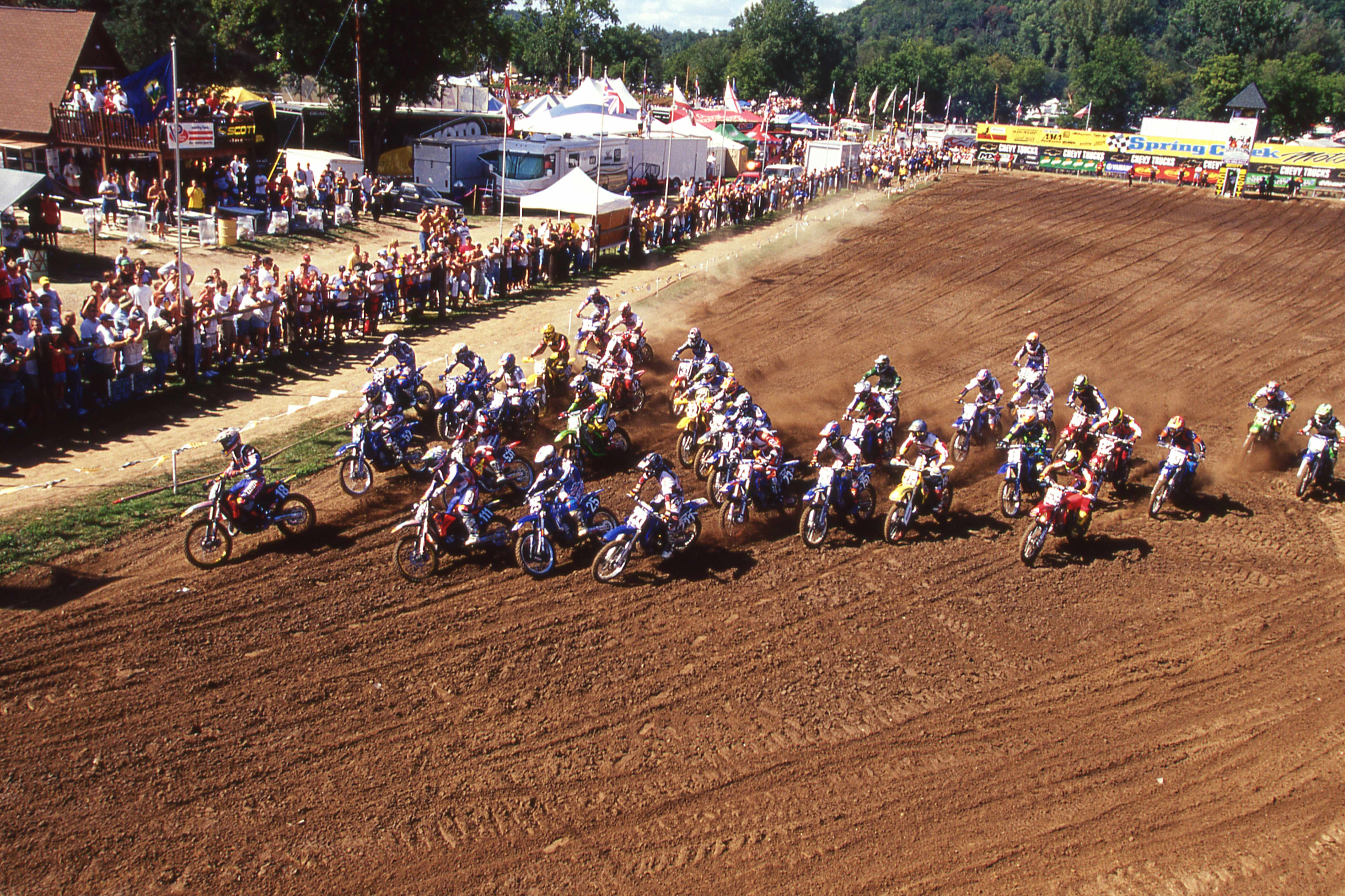 Binghamton was gnarly. But, Brownie did try to push him off the track at the top part. Didn’t hit him, but tried to. I think he pissed off GL. They went down by the road and there was a jump and then a big, wide turn. As they did this turn, GL was on the inside and just popped over the rut and cleaned out Brownie. I was pissed about that one, but I kind of saw the first part of it, too. They had another moto to go. It was a gnarly year. That was the one where I remember the KTM guys coming by as we were starting to turn the mule around. “Yeah, what do you think of that?”