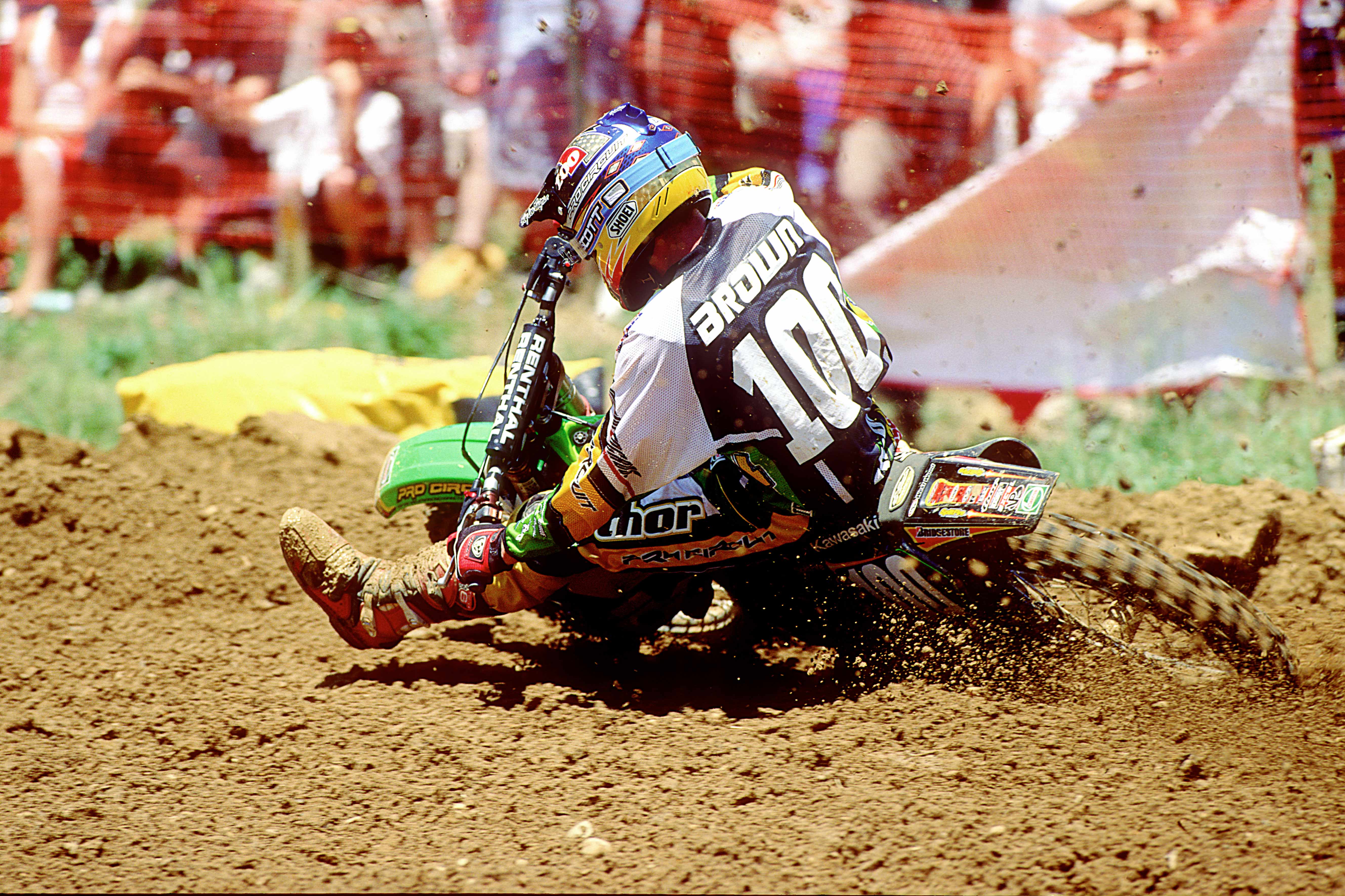 Mike Brown and I had our run-ins. It started in ’99 in Brazil, I think. I got the holeshot and in the back part of the track, he was going fast. He passed me, looked over and just swerved and just hit me off the track. Then he flipped me off! At this point, I had never even met the guy. I just remember I was really irritated and I just pinned it down the hill into the next turn and hit him off the track. That was the start of Mike Brown and I. I hadn’t even met him. I remember afterwards I was like, “That guy’s a dick. I f**king hate that guy. I’m going to f**king clean him out.” My dad’s like, “Yeah, you clean him out!”