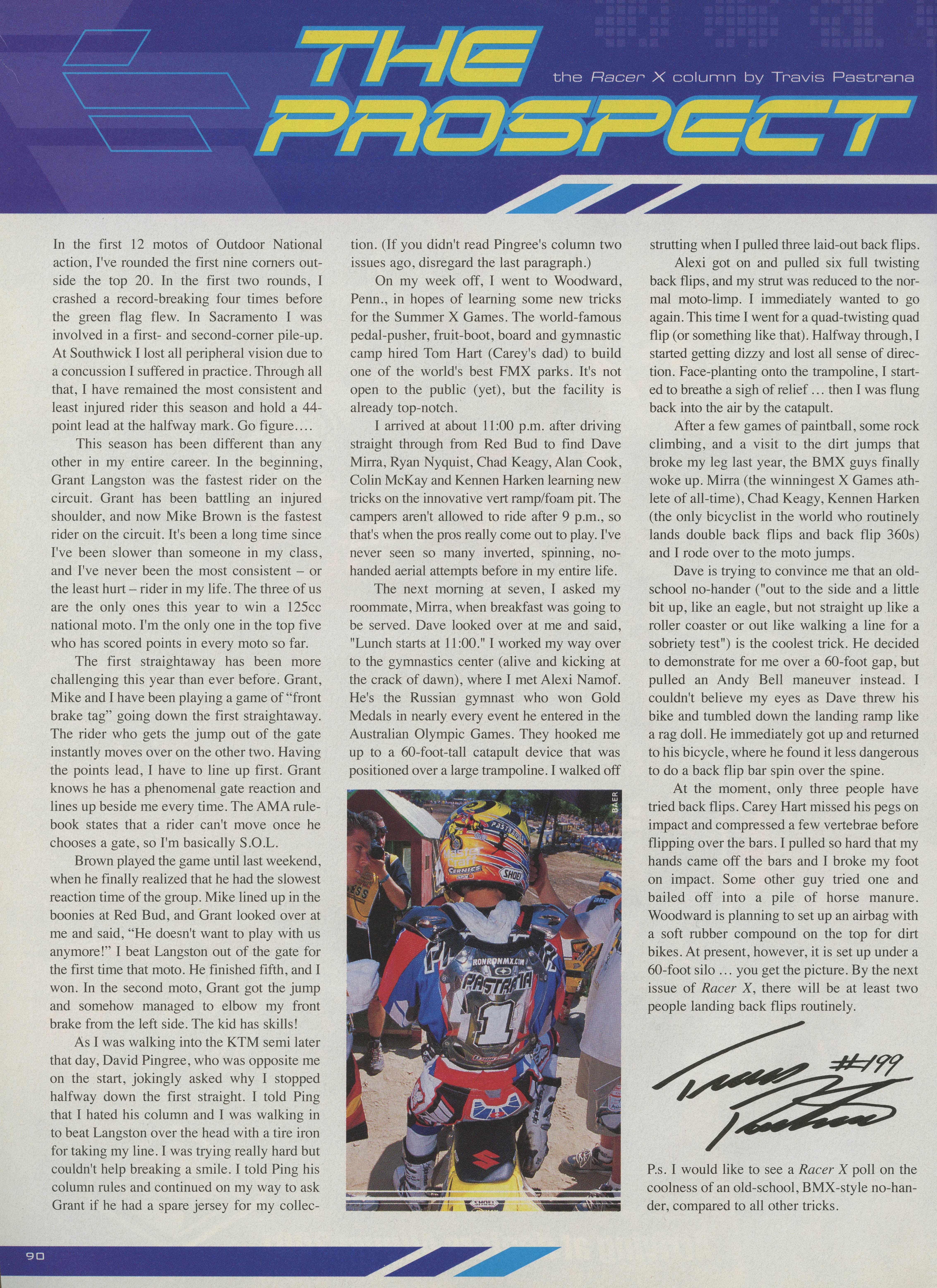 I would way rather have my friend Mike Brown get a National Championship than Grant Langston. Nothing against Grant, but I’m rooting for my friend. Pastrana should have won, but I was glad Mike Brown won. Mike Brown was fast as crap that year.