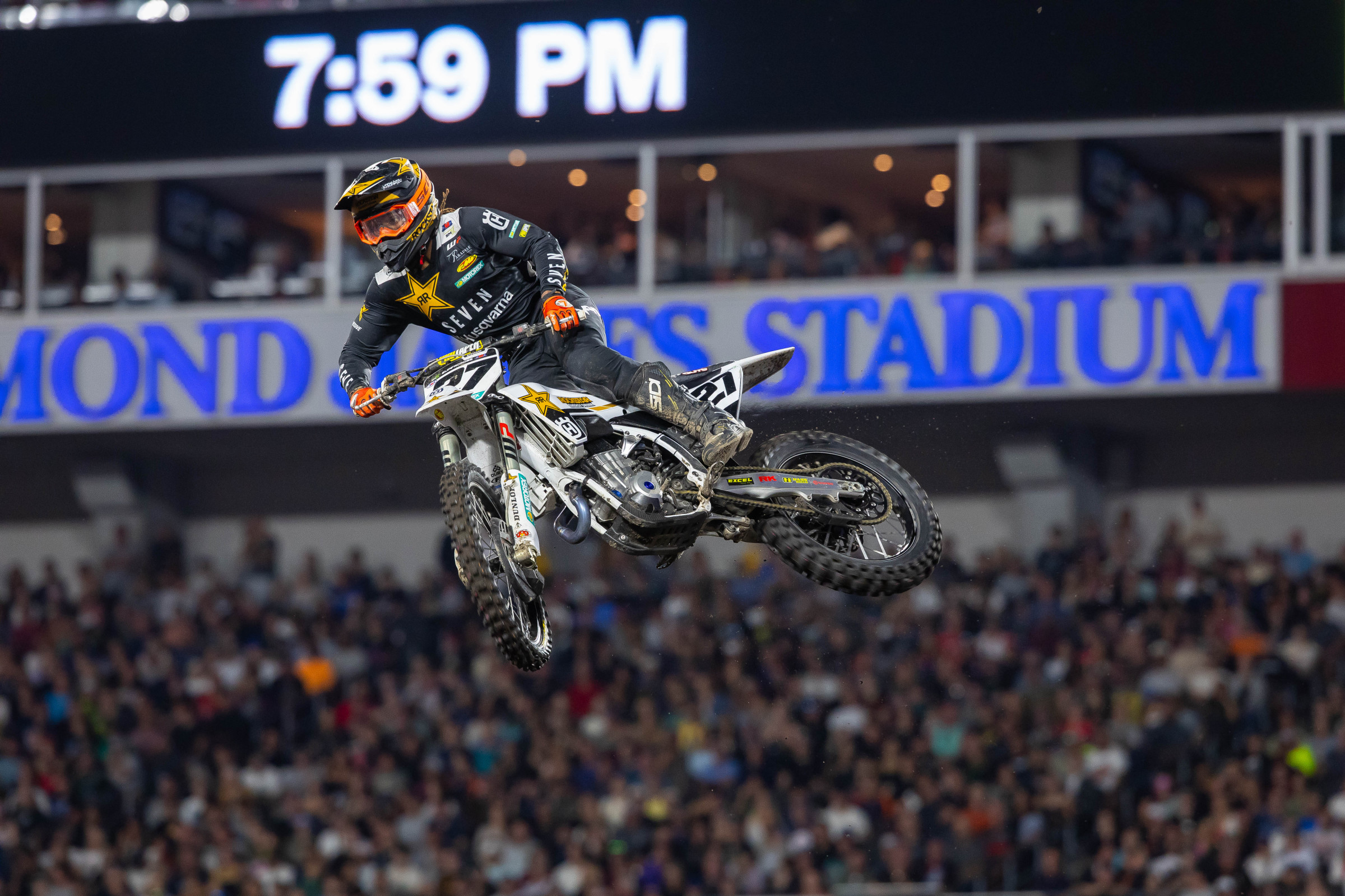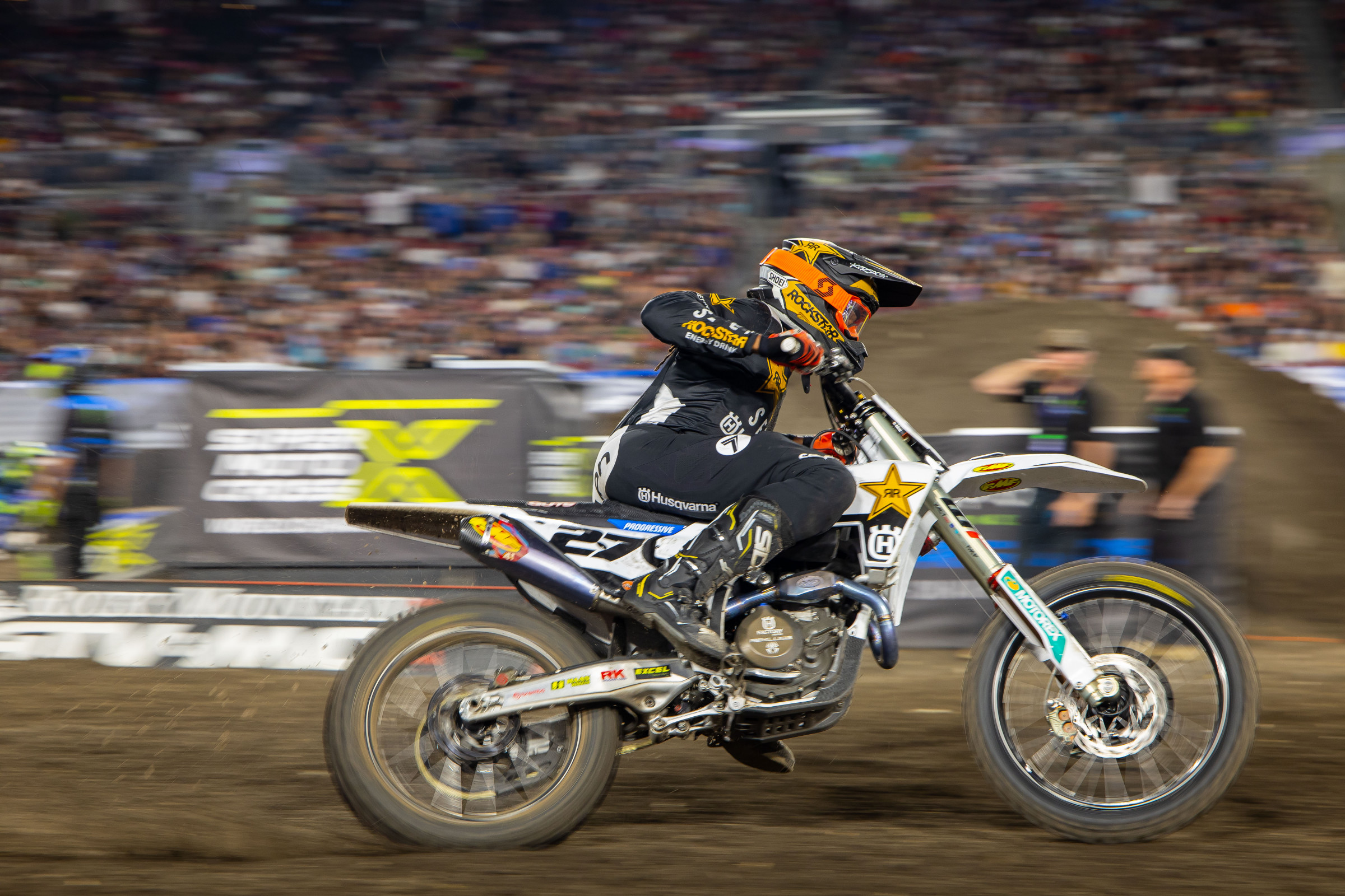 Malcolm Stewart: Yeah, I mean. You know, after Vegas [SMX finale] I was planning on taking some time off, maybe do some fishing and things like that, and then we had a hurricane come through and I'm sitting in feet of water, right? My whole house is destroyed and me and Roger Larson [of Seven gear] were sitting there and we were like every everybody's flooded, right? At that time, we had to help a bunch of people, you know, pulling people out of houses whatever it took, you know, because that's a real life situation for a lot of people, and I kept myself very busy. I think that's why I was losing weight because there was no source of food! [Laughs] But, no, it really is an emotional roller coaster and to pull all that out and leave all that behind me and just try to focus on the racing side of things, knowing that I have a bunch of friends and family that they were just sitting outside their house like, they have no house, right? And it's just a sad moment. At the same time that motivated me, right? Like to lose all that, hundreds of thousands of dollars just in my own personal, you know, stuff that I lost….at least I made some of that money back tonight! [Laughs] But again, just knowing that happened, that's why I ran “Florida Strong” on the back of my helmet because I want people to understand that I'm here, I feel you, I feel your pain, and you know, again, as we're all one big family, we're God's child.