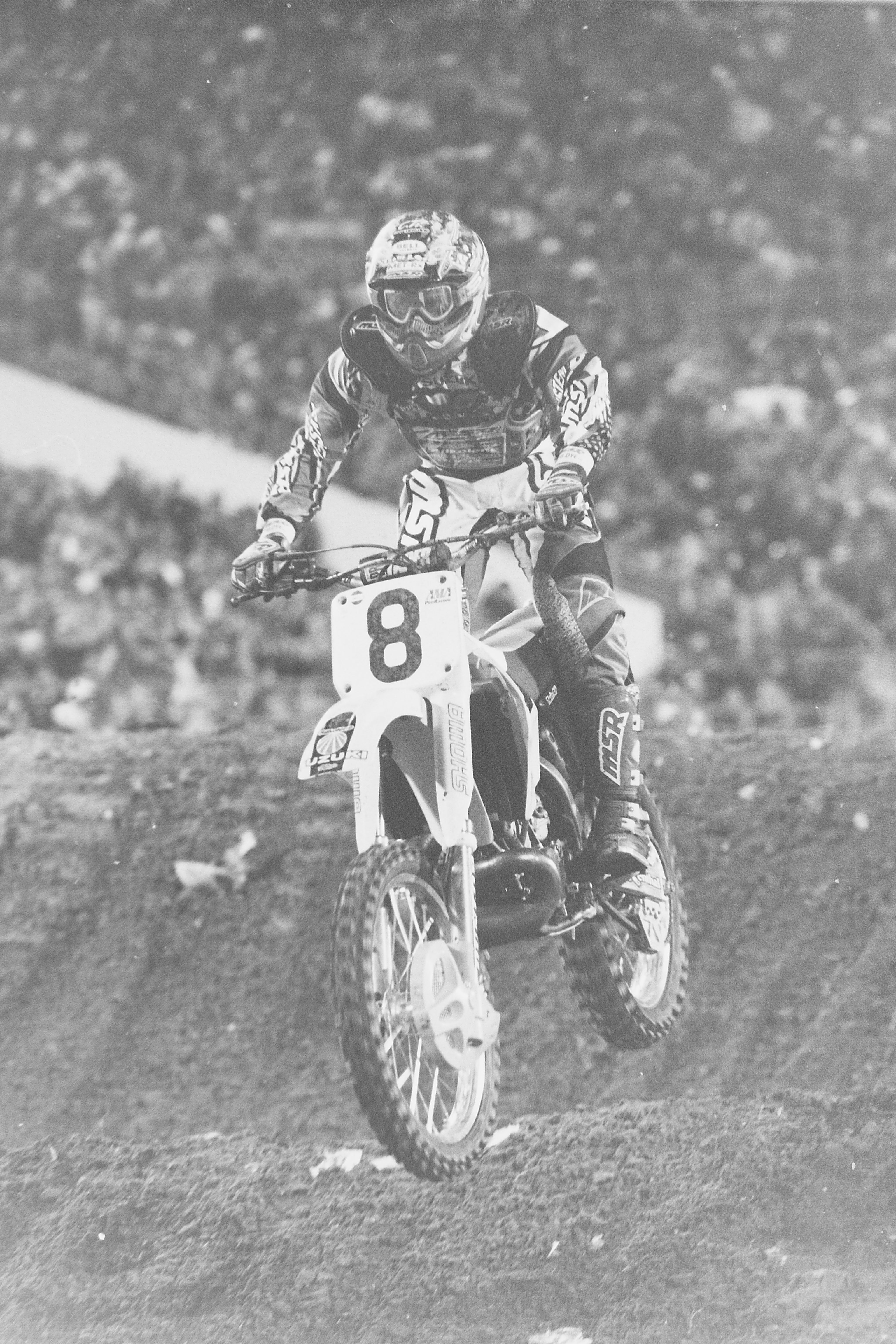 I had been with Kawasaki for five years and signed with Suzuki for 1996. When I got there, it was a new model year and I had come off a pretty extensive knee injury in ‘95. I was uncomfortable during the testing but I kind of thought it was because I’d been off the bike that long. There were a number of things that I thought was contributing. The reality of what was going wrong with the bikes—and then my confidence—was the power valve would stick open. The linkage would break every time I rode it. The foot pegs would break off. There were a number of things going wrong with that model that were confidence robbing. It’s not like they [Suzuki] weren’t trying to overcome them, but once you’re into the season and you discover all that stuff it’s too late.