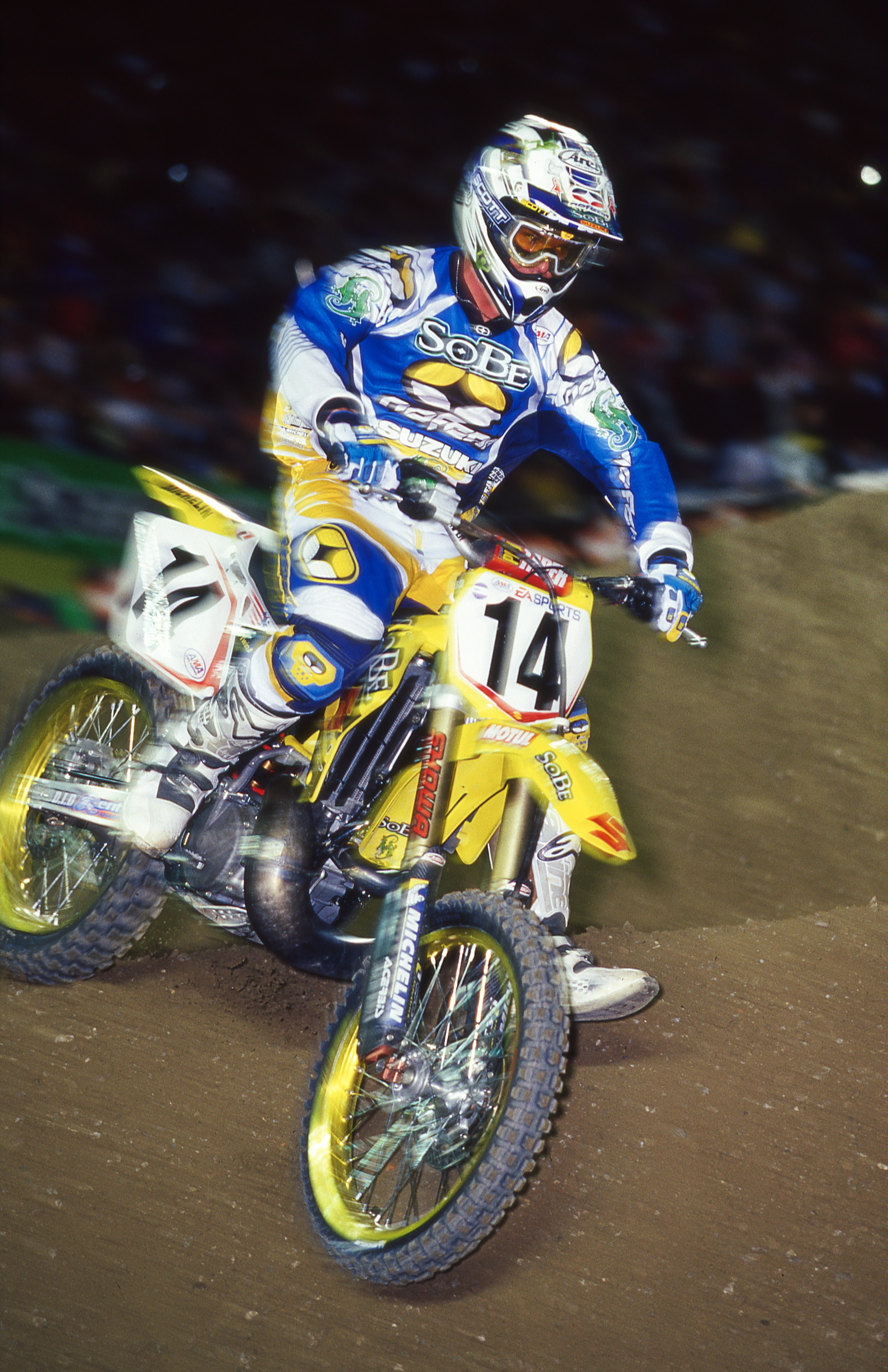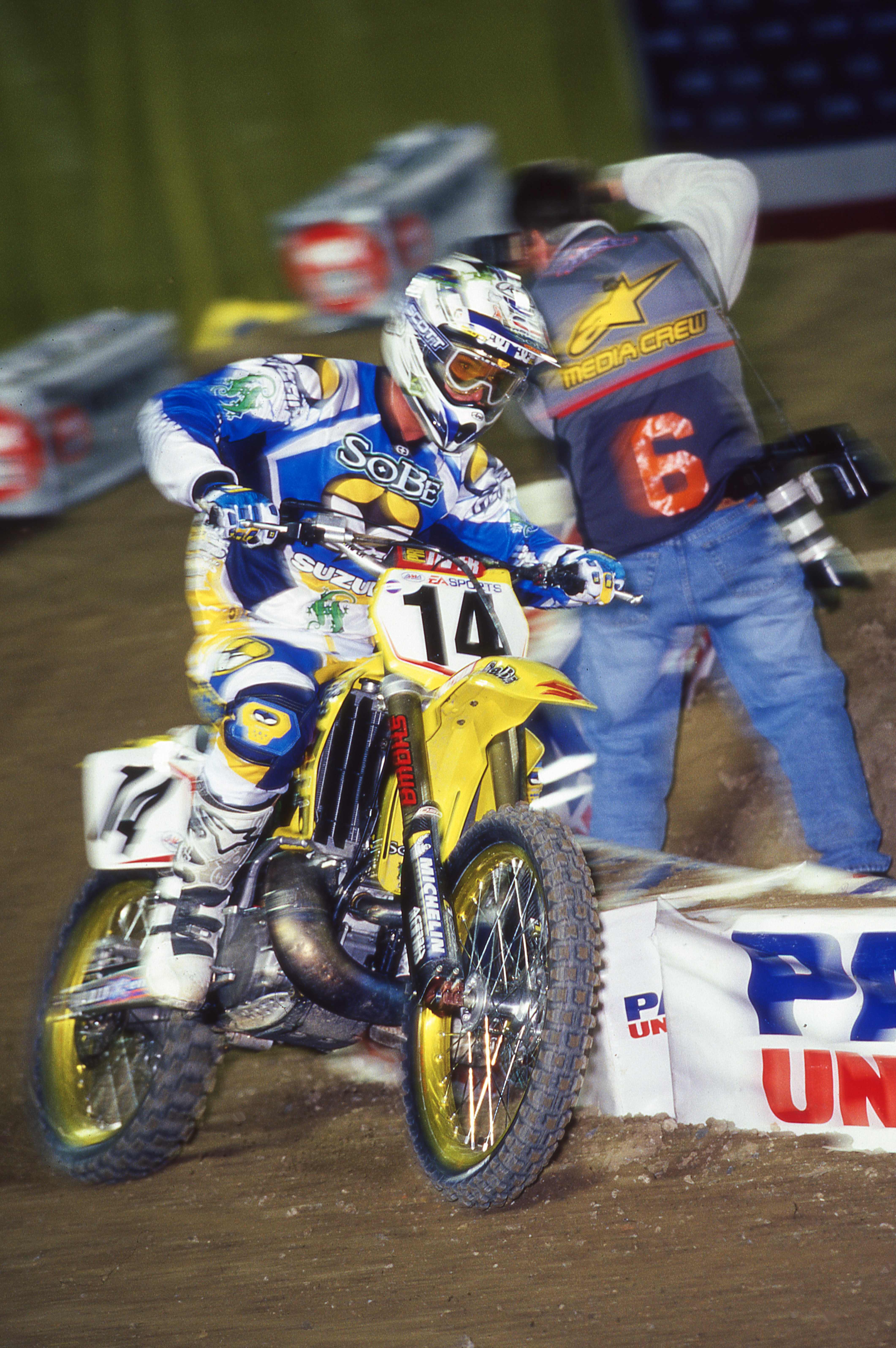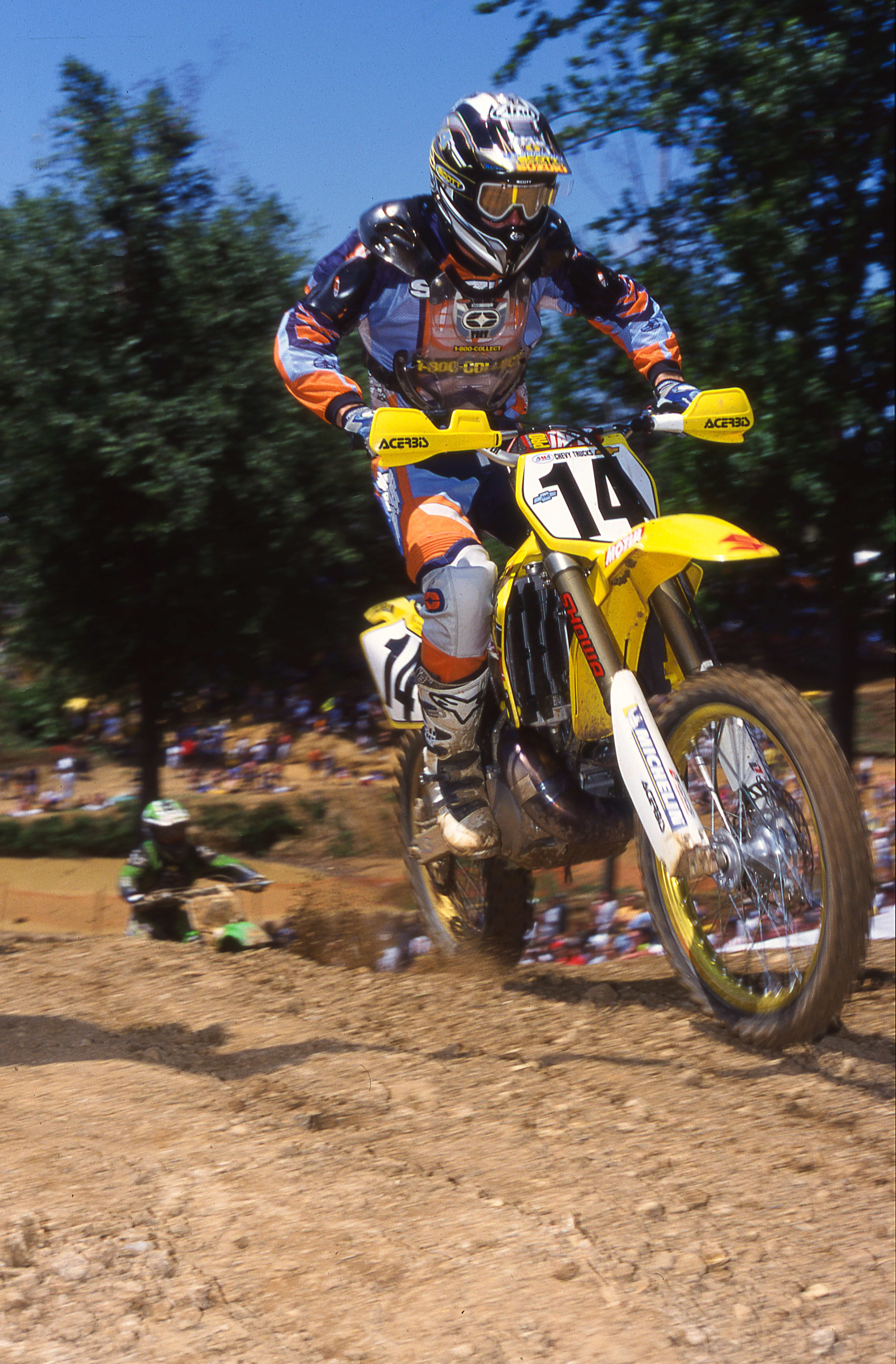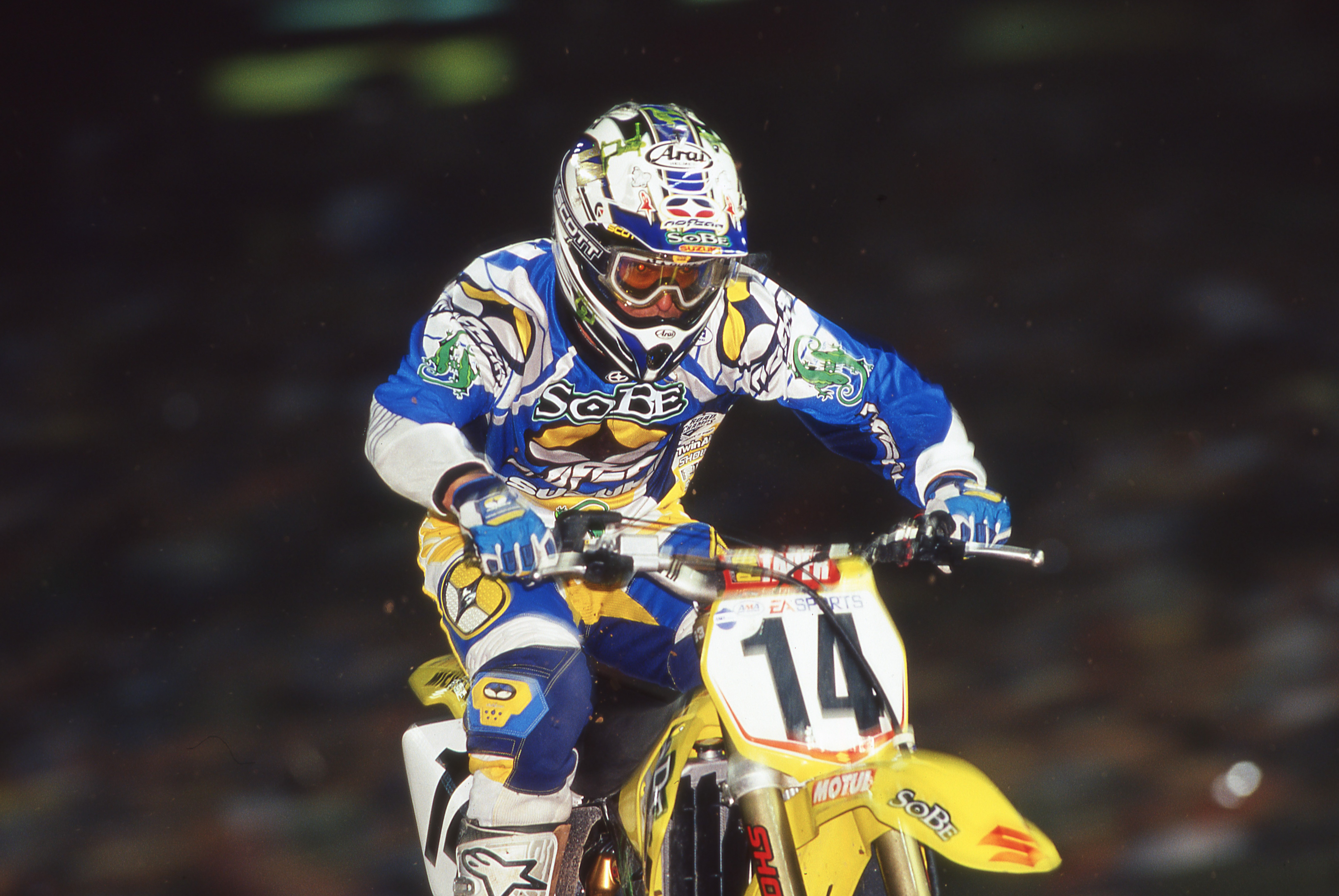 Kevin Windham had left Yamaha, his first factory team, to go to factory Honda for 1999-2000. He won a lot of races for the Red Riders and worked with six-time SX and MX champion Jeff Stanton who was there as a rider advisor. Windham’s contract was up at the end of 2000 and Suzuki wanted the #14 bad.