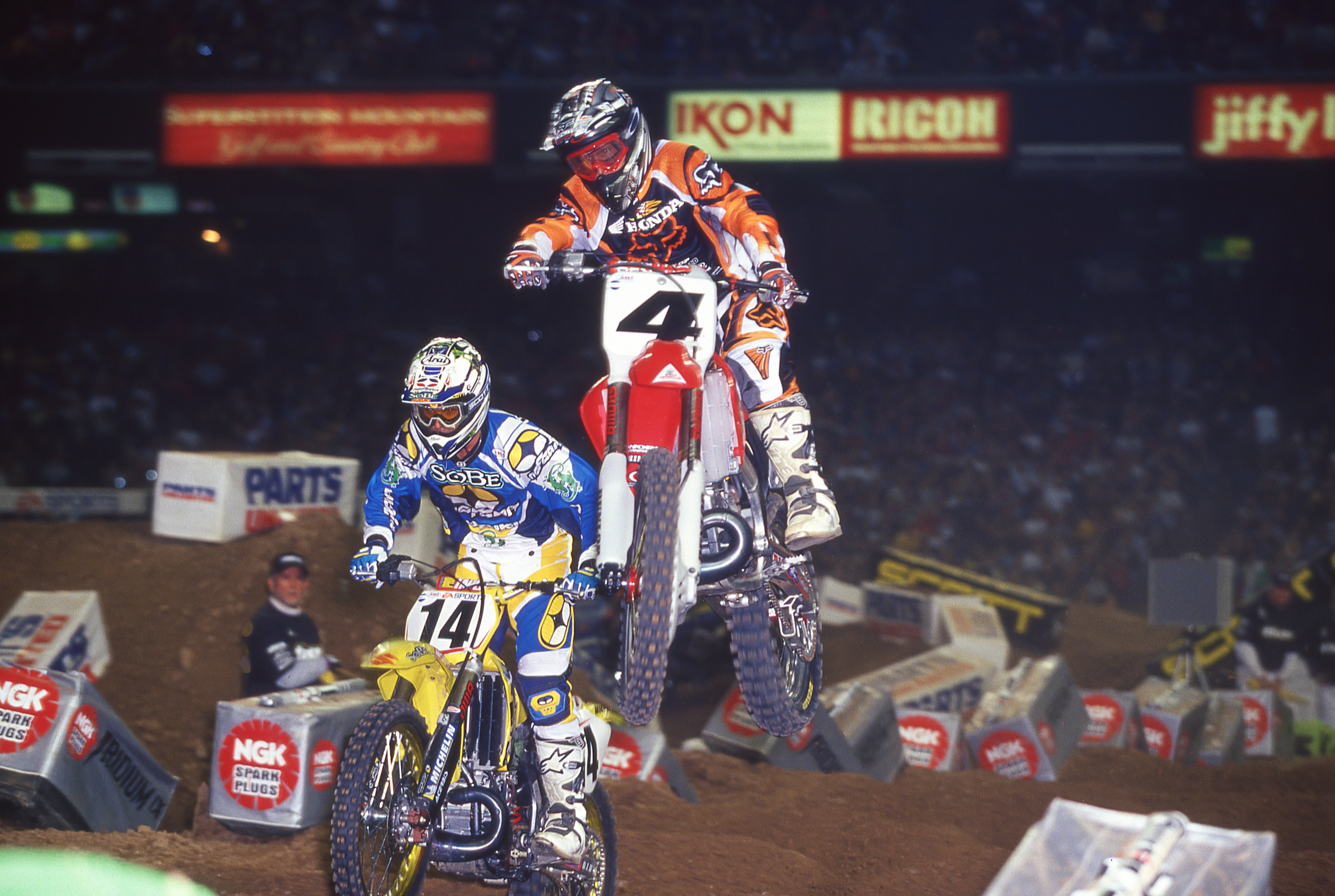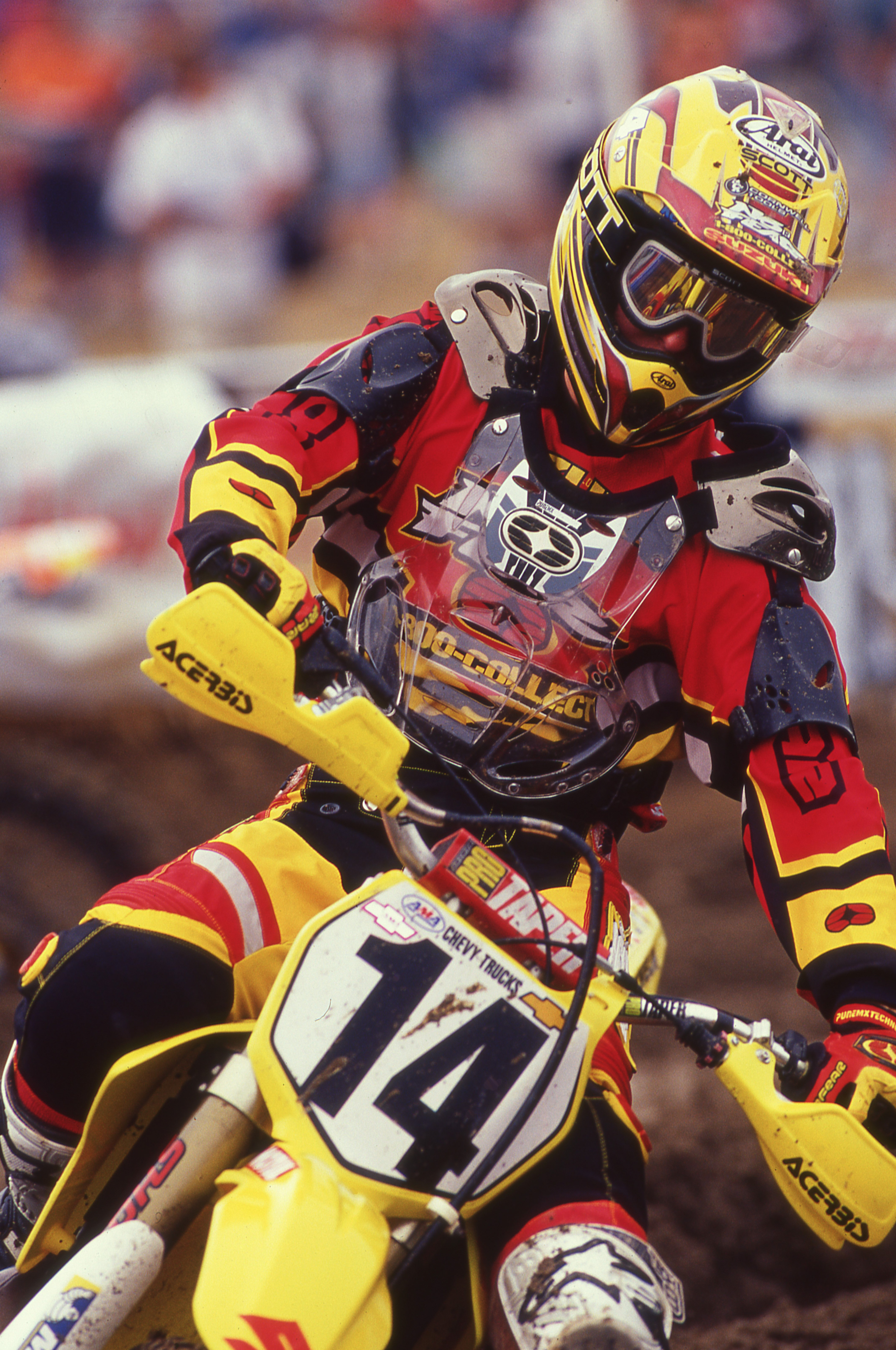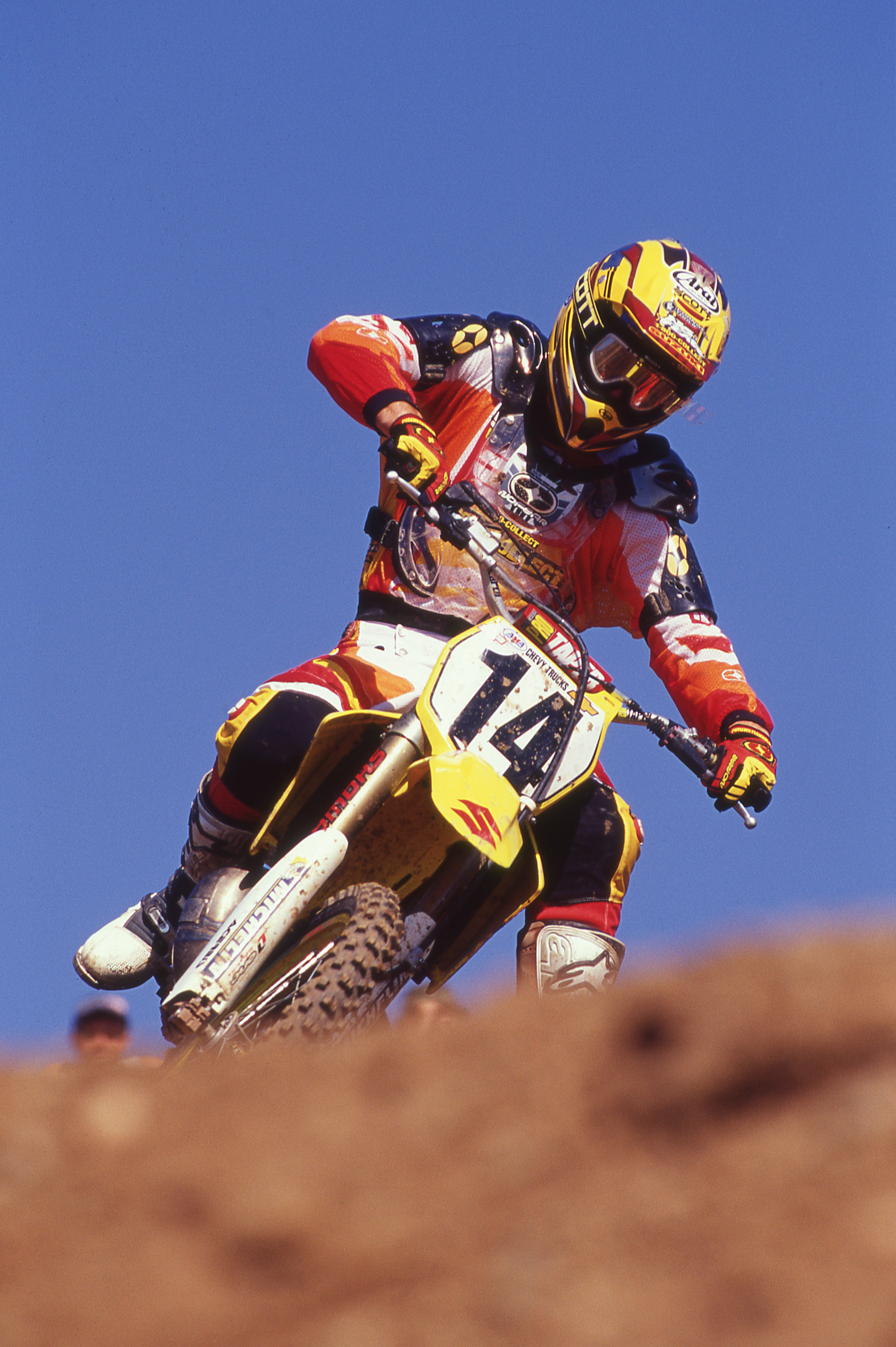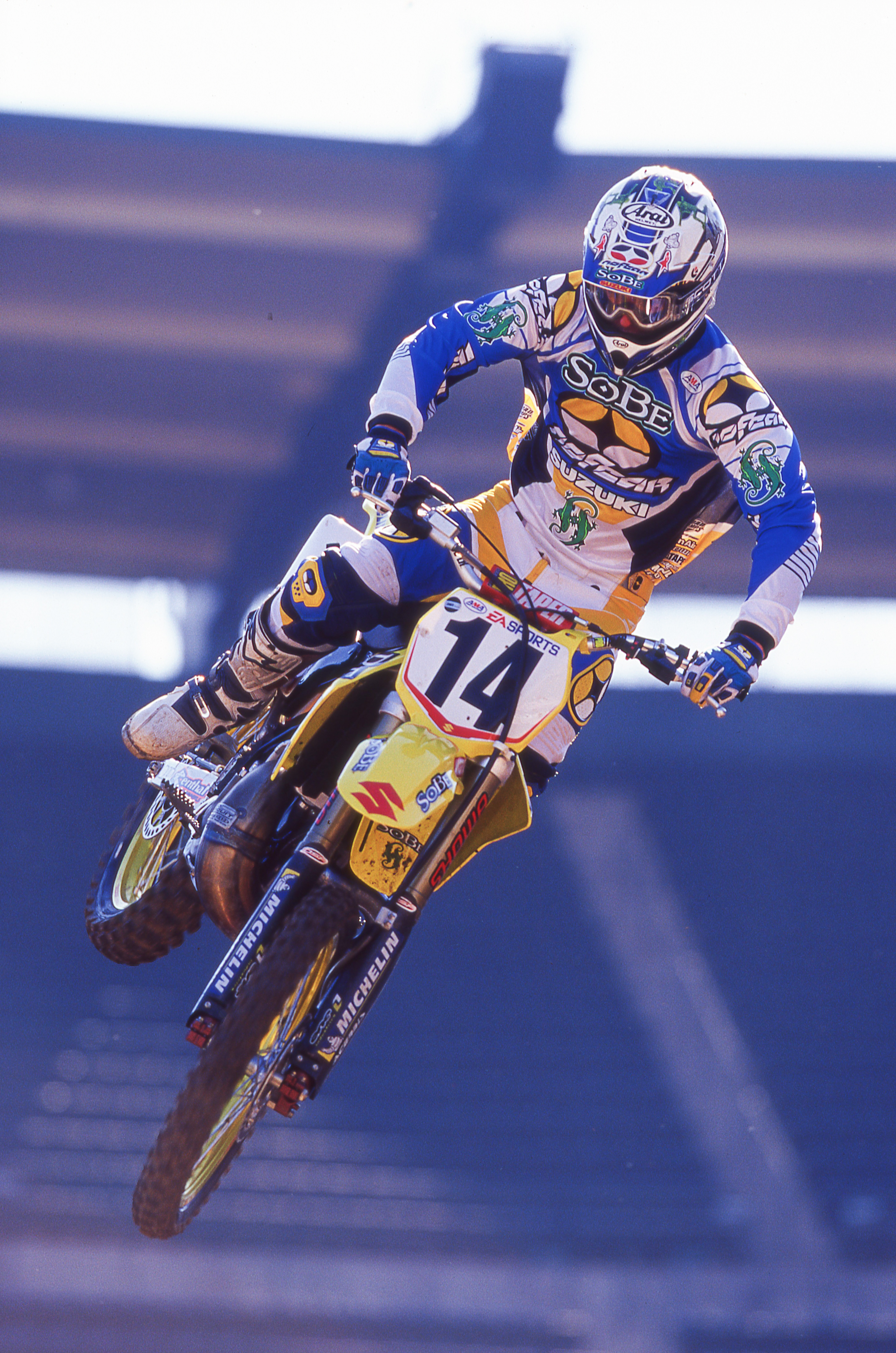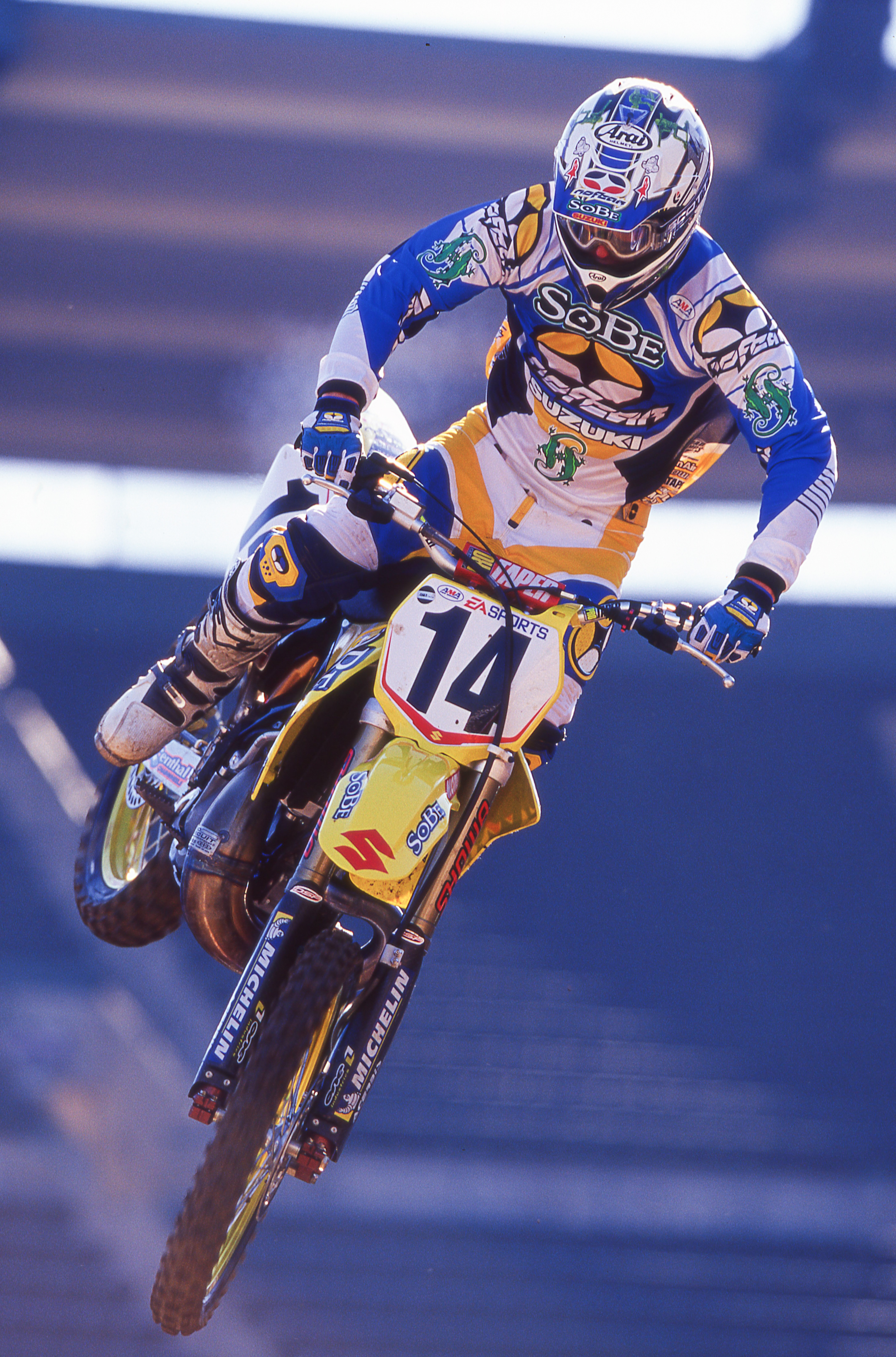 Kevin Windham had left Yamaha, his first factory team, to go to factory Honda for 1999-2000. He won a lot of races for the Red Riders and worked with six-time SX and MX champion Jeff Stanton who was there as a rider advisor. Windham’s contract was up at the end of 2000 and Suzuki wanted the #14 bad.