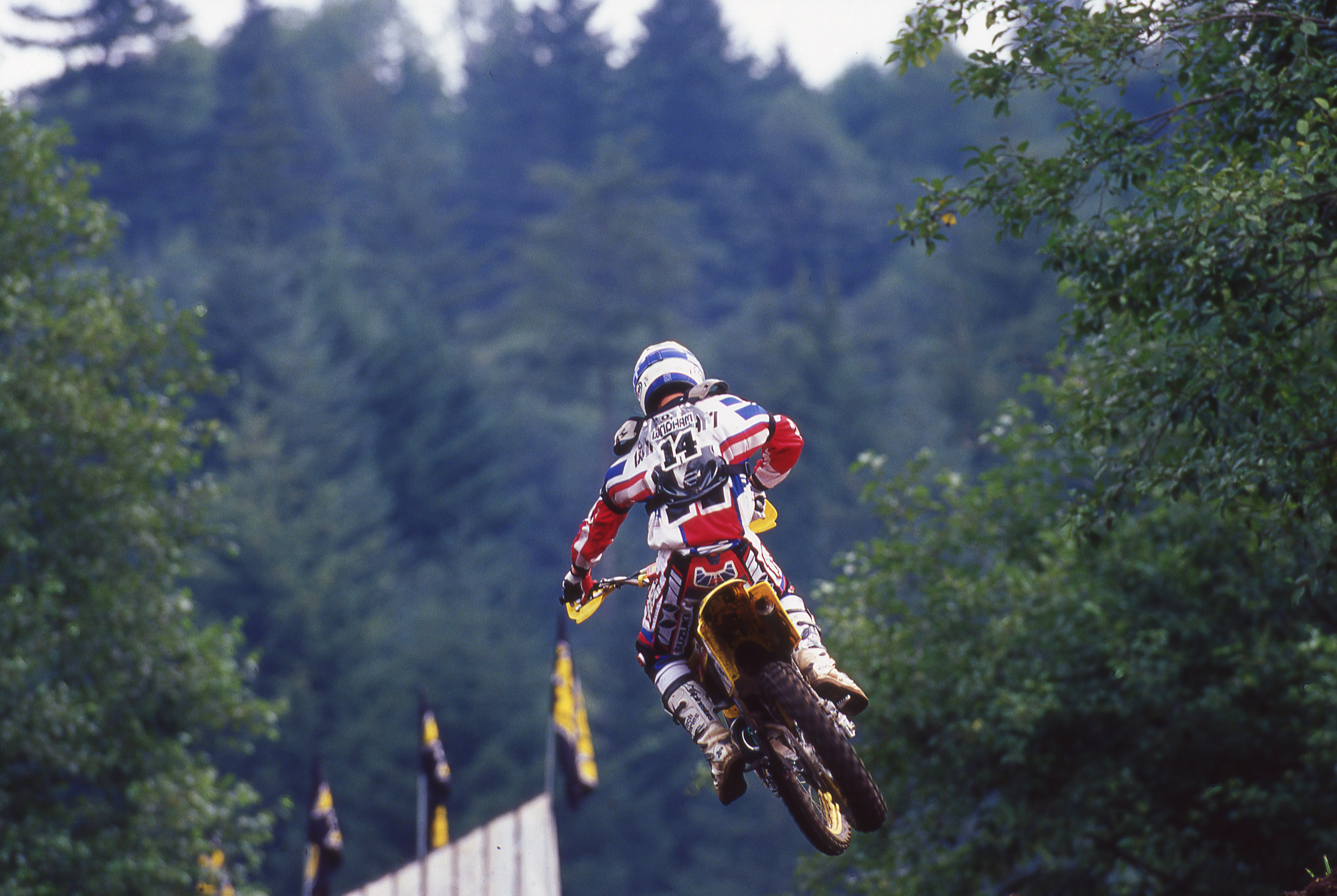 I just remember that summer, the first ten, fifteen minutes he’d be just unreal, and then he would be leaning over the front. I remember Ricky’s dad saying that, too, in his southern drawl. “You can always tell when he’s starting to slow down. He hangs over the front of the bike.” He’d be way over the bike, like Johnny Campbell going through Baja or something. Ricky would be able to eat him up. That happened a lot, I think. I remember that being a trend that was kind of frustrating for everybody, especially for him I’m sure.
