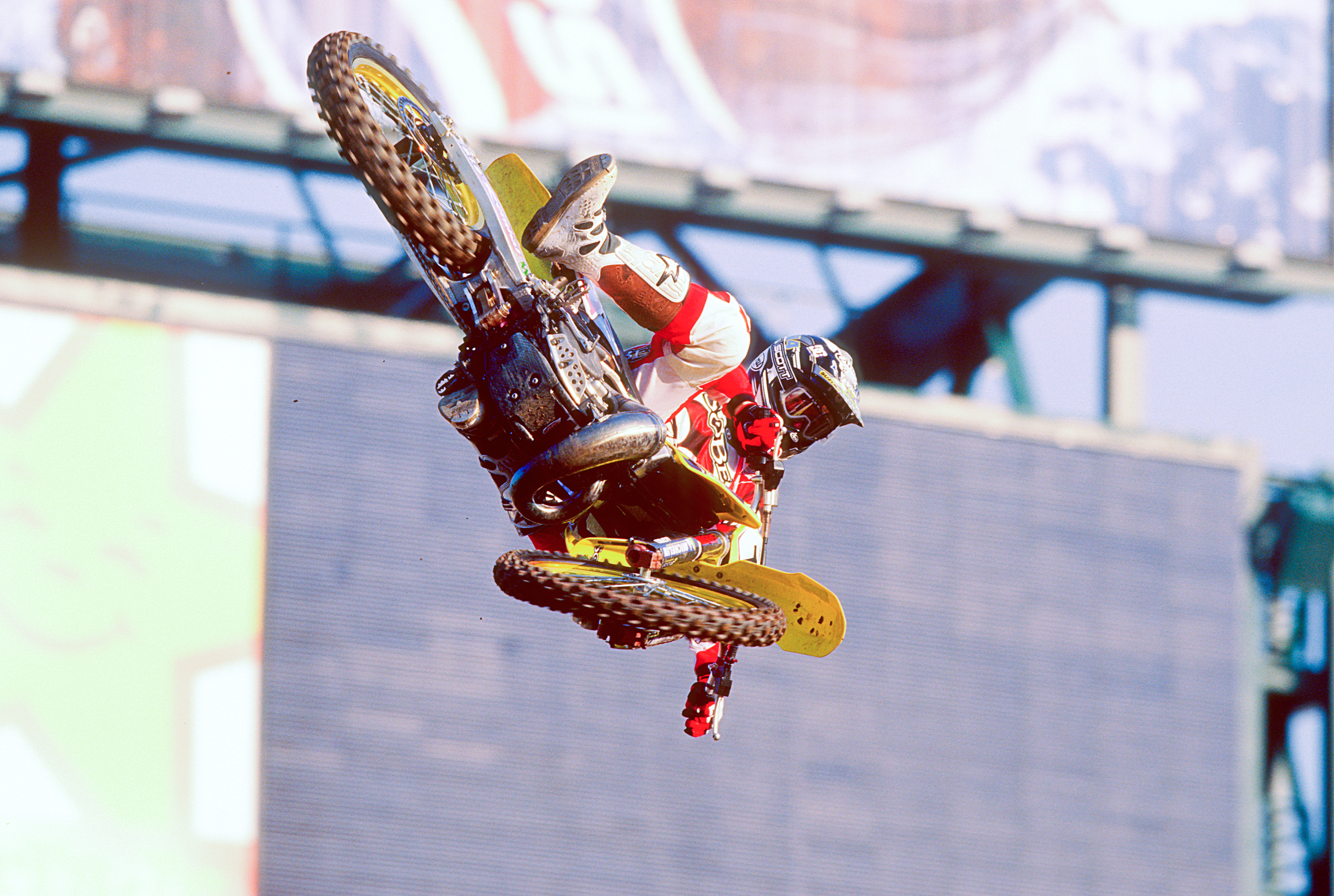 The way it came about was just kind of me and Travis having fun. The tracks back then, a lot of times the first turn kind of 45s in, and it actually starts into a rhythm section. At least it was a lot of those years. That outside berm was enough to kind of jump. You’d catch a little bit of air and it would be enough to kind of load that suspension right into the face of that little small jump. It gave me an opportunity to what I thought would be go for four. It was going to be a good line. It was definitely something that had it worked out could have potentially been a race line.