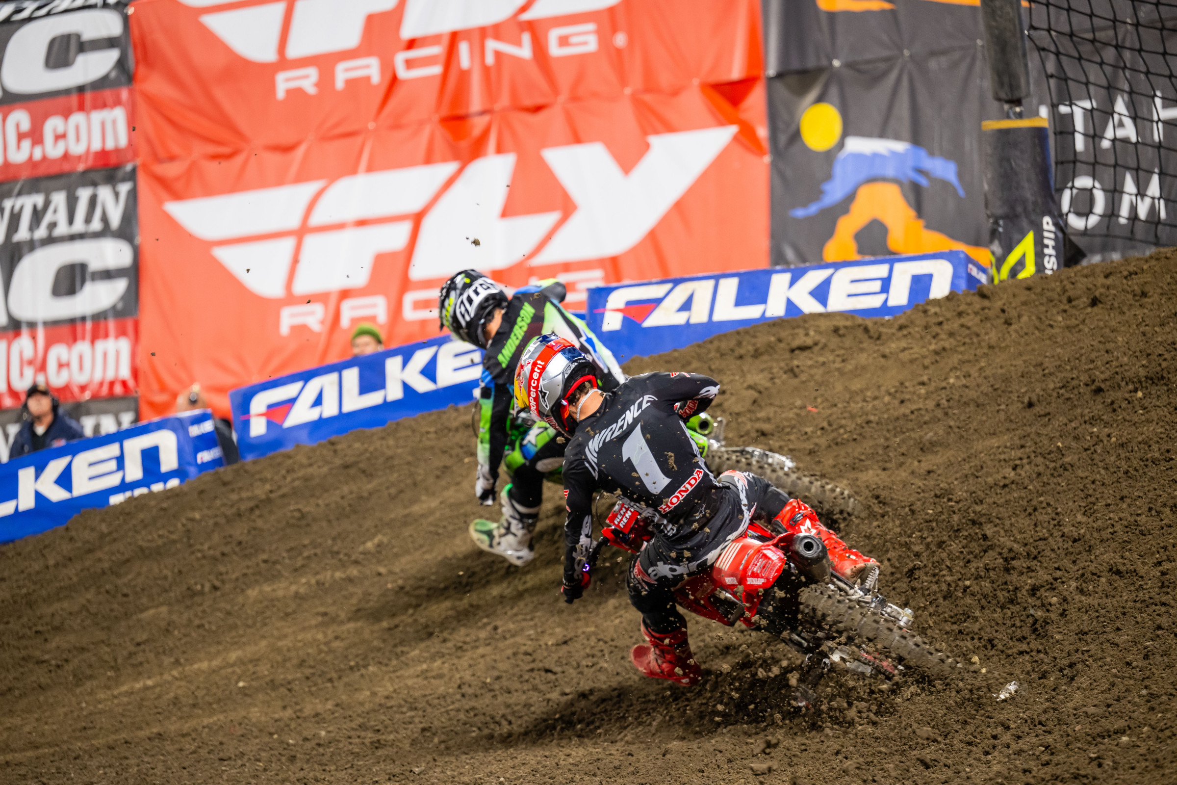 Well, around halfway through the main event, Anderson was leading after passing holeshot man Justin Cooper and Lawrence was once again the closest to the #21 machine. The Honda HRC Progressive rider caught up and got close but did not want to get too close. Still, he was ready to pounce on any mistake or slight bobble. He made a few attempts, but Anderson fought back.