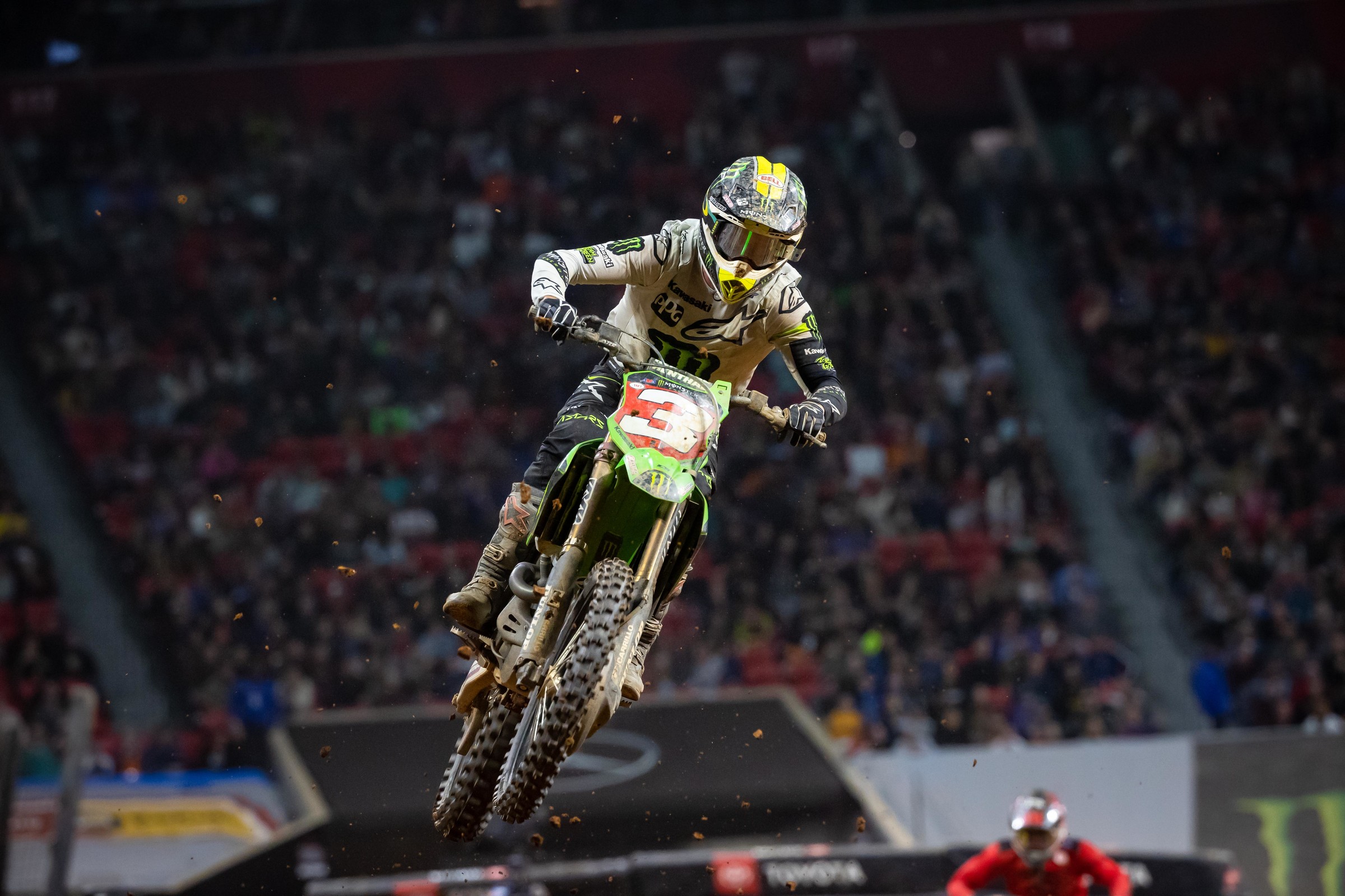 Yes, Eli Tomac is riding strong, hence the P1 position in what has been an astonishingly odd and abbreviated 2020 Monster Energy AMA Supercross Championship. But Honda HRC company man Ken Roczen has been strong, also, leaving Tomac up a mere three points (226 to 223) in the standings. With 10 rounds having been run thus far in ’20, Tomac has won five main events and with an average finishing position of 2.6. On the podium 60 percent of the time before COVID-19 darkened everyone’s door, Tomac executed a slick pass on Roczen with two laps to go to not only win at Daytona International Speedway, but to cast himself as the lead man in the title chase.