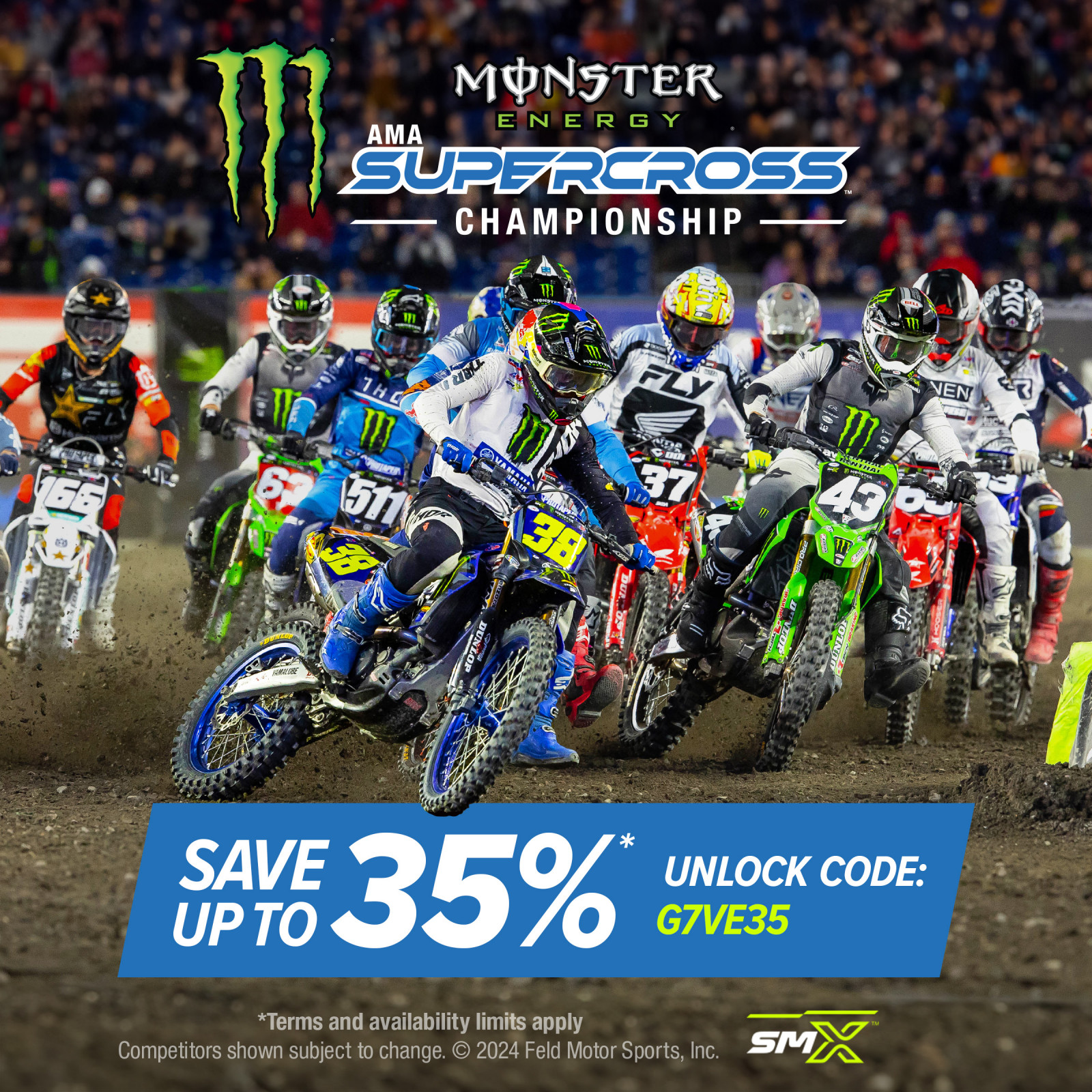 For more information on Feld Motor Sports and events near you, please visit Monster Energy AMA Supercross or SMX World Championship directly.