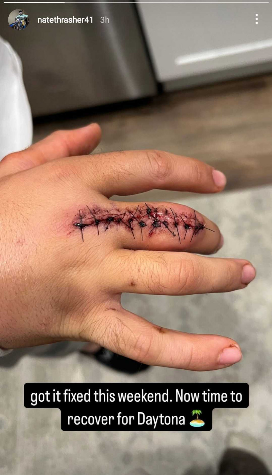 Thrasher posted the following picture on his Instagram story of his broken finger after surgery. Again, plan is for him to race the Daytona SX next weekend after having this weekend off for the 250SX West Division round in Texas.