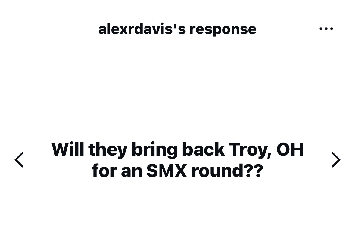 Is this serious? I can’t tell. Look, Troy sucked as an MX national, but it actually does fit into the “SMX” thing. Well except for the whole, “can’t see shit” part if you’re a fan. I already wasted too many words on this question.