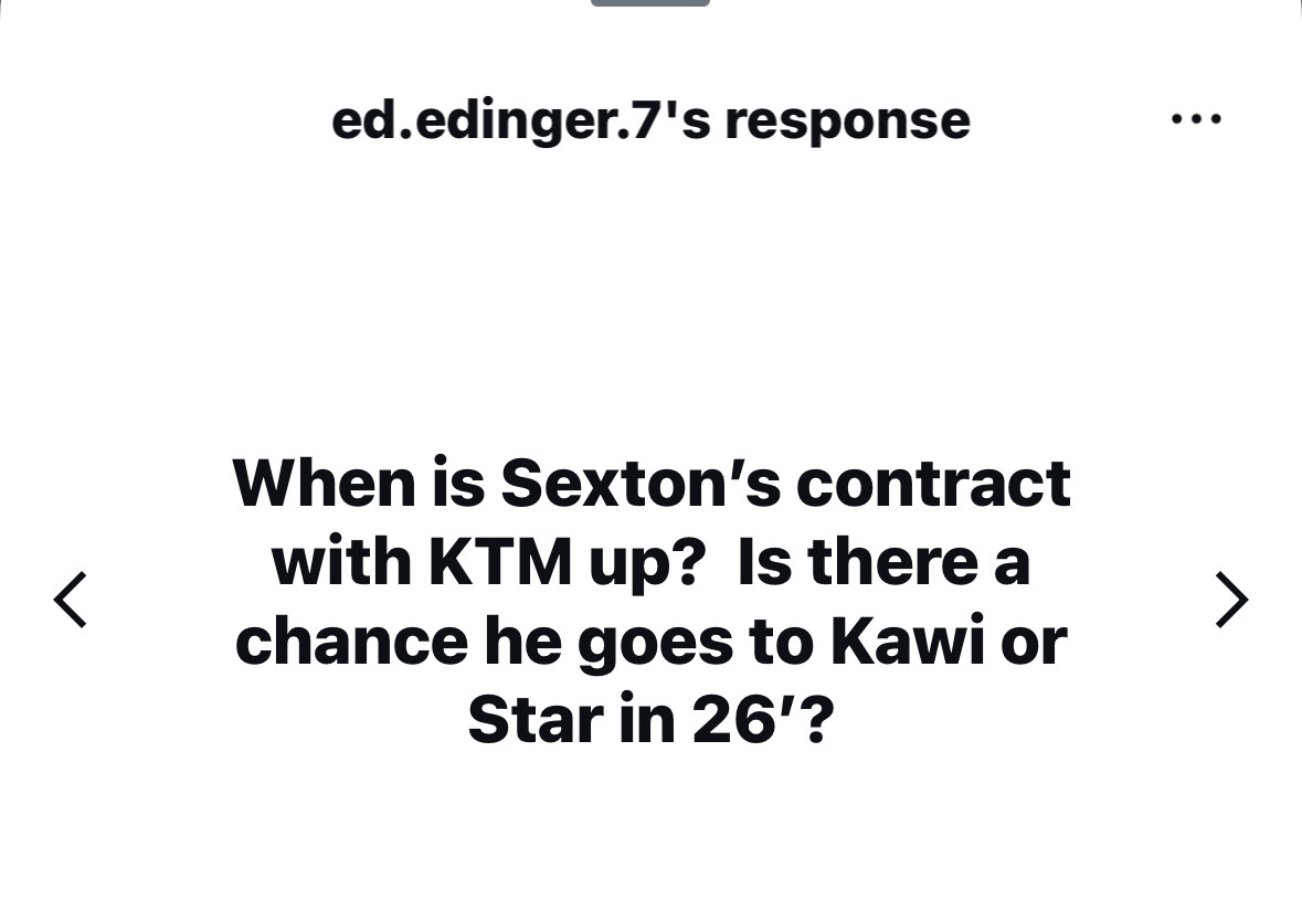 He signed a two-year deal so it’s up at the end of next season. As to what he does, unless it gets a whole lot better one would think he’s out of there, right? That might line up with Tomac and Cooper Webb both hanging up their boots as well so yes, that would leave an opening for him there at Star. And also, Jason Anderson’s deal is up too so maybe Kawasaki alongside Jorge Prado? I think I would rank them Yamaha, Kawasaki, and then stay at KTM for Sexton’s home in 2026.