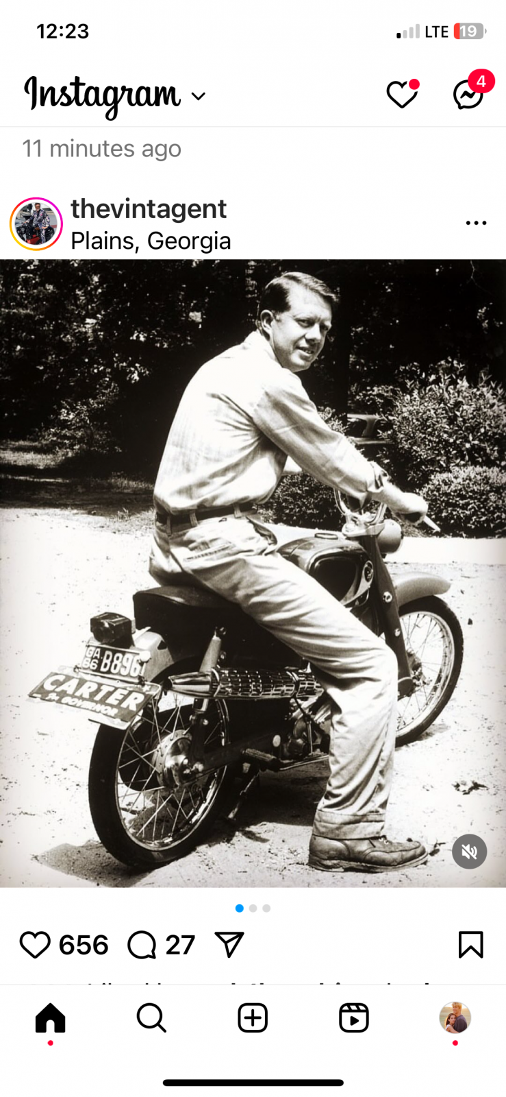 One person that we did not include, simply because we had no idea he was into motorcycles, was former U.S. President Jimmy Carter, who passed in December at the age of 100. As a young man, Carter rode motorcycles, and he when he was running for governor in Georgia in the 1960s, he rode around on a Honda S50 with "Carter for Governor" on the rear plate. I don't recall any other U.S. President riding a motorcycle, but I do recall former candidate Jon Huntsman of Utah being an avid fan and rider himself—I took him on a lap around Budds Creek when he was running in 2012. Also, another former candidate, Minnesota's Walter Mondale's, I recall his son being a regular amateur racer. And soon-to-be-U.S.-President-again Donald Trump's grandkids are into motocross and you'll see dirt bikes on the social media channels of that family. And back in the mid-2000s U.S. Attorney General Dan Ashcroft once came out to the St. Louis SX and rode an RM250 out for opening ceremonies. But as far as I can tell (or Google) the late Jimmy Carter appears to be our only motorcycle-riding U.S. President so far.