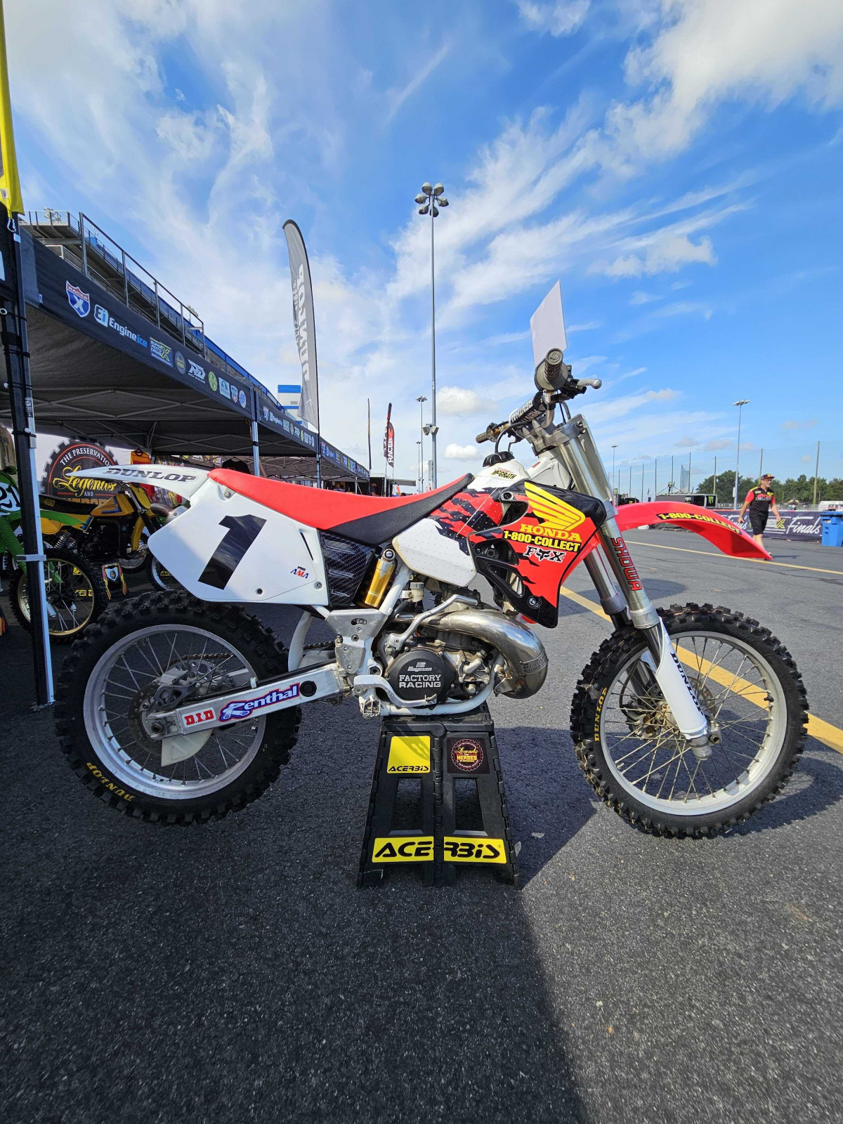 Every lap around Healey would swing out wide on a big bank turn and absolutely launch the jump that was dubbed the Diet Coke Catapult, much to the delight of the 70,000 fans there that night. Healey actually jumped further on his R&D Racing RM80 rocket than professional rider Ross “Rollerball” Pederson, who’s 55-foot leap won the Canadian a $1,000 bonus that night. Unfortunately, Healey’s launches didn’t count because he wasn’t in the actual AMA Supercross race.