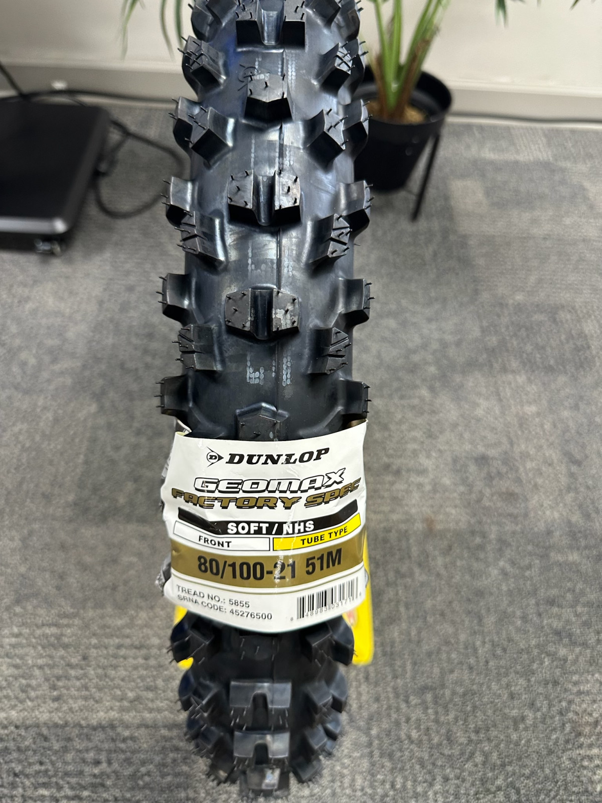 Dunlop had us out to their facility in Huntsville, Alabama, to try out their new spec tire that will be available in December at your local KTM dealership. YES! That's right! Us normal folk can now buy the same tires that Chase Sexton, Jett Lawrence, and Eli Tomac are running. After riding on the Factory Spec tires against the MX34s, you can tell a big difference on lean angle, especially the front tire! I have been poking at Dunlop for years to put some specs up for sale to the consumer and FINALLY they did it! I honestly can't believe it. I will say that KTM did have a huge part in this as they purchased the tires in the hopes to start putting them on their upcoming FE bikes, so that means you and I can go purchase these at your local KTM dealership. The markup on the Factory Specs are only 20 to 22 percent compared to the MX34 so that isn't that much considering what I thought they were going to cost. Will they last a long time? Look, if you're asking me that question then the Factory Specs aren't for you. These are race tires and will only last a few hours, but I can tell you I put 2.1 engine hours on a set of these and the knobs are still intact as well as the integrity of the carcass. If you're looking for more info, check back soon to Racerxonline.com for a full video as well as my website, Keeferinctesting.com to get more of a detailed breakdown.