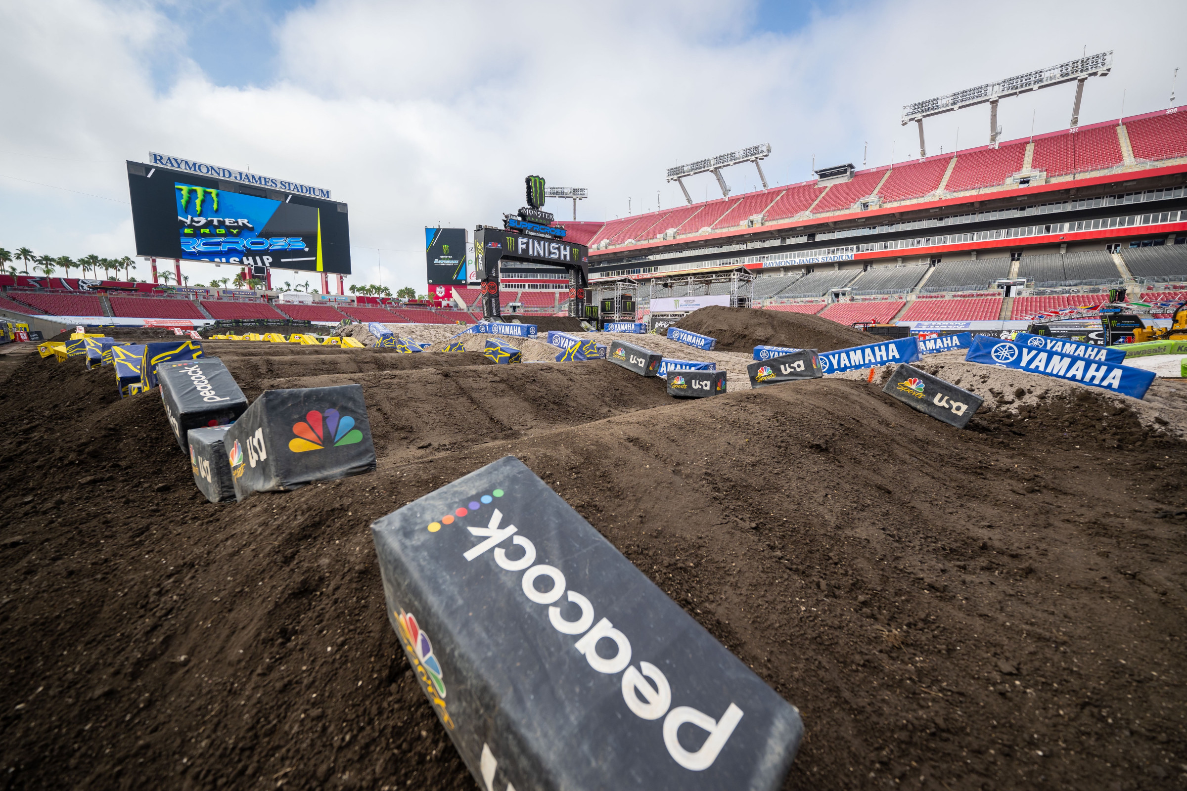 As riders look east, that means changes to climate, soil, and the 250 line up. Tampa is a confusing round because most will immediately think "more traction" but that's not really how Tampa shapes up. The hard clay will be slippery and even stranger, the dirt used is incredibly dark. That makes overall vision very challenging and the subtleties of ruts and bumps hard to make out. Watch for riders to use lenses that brighten vision to help accentuate the edges and shadowed ruts. After Tampa, that increased traction will become a thing; Detroit, Arlington, Daytona, and Indy all loom in succession. But for this first round, traction will be at a premium yet again.