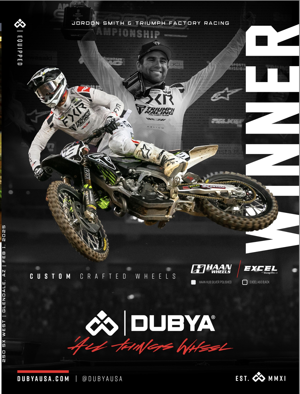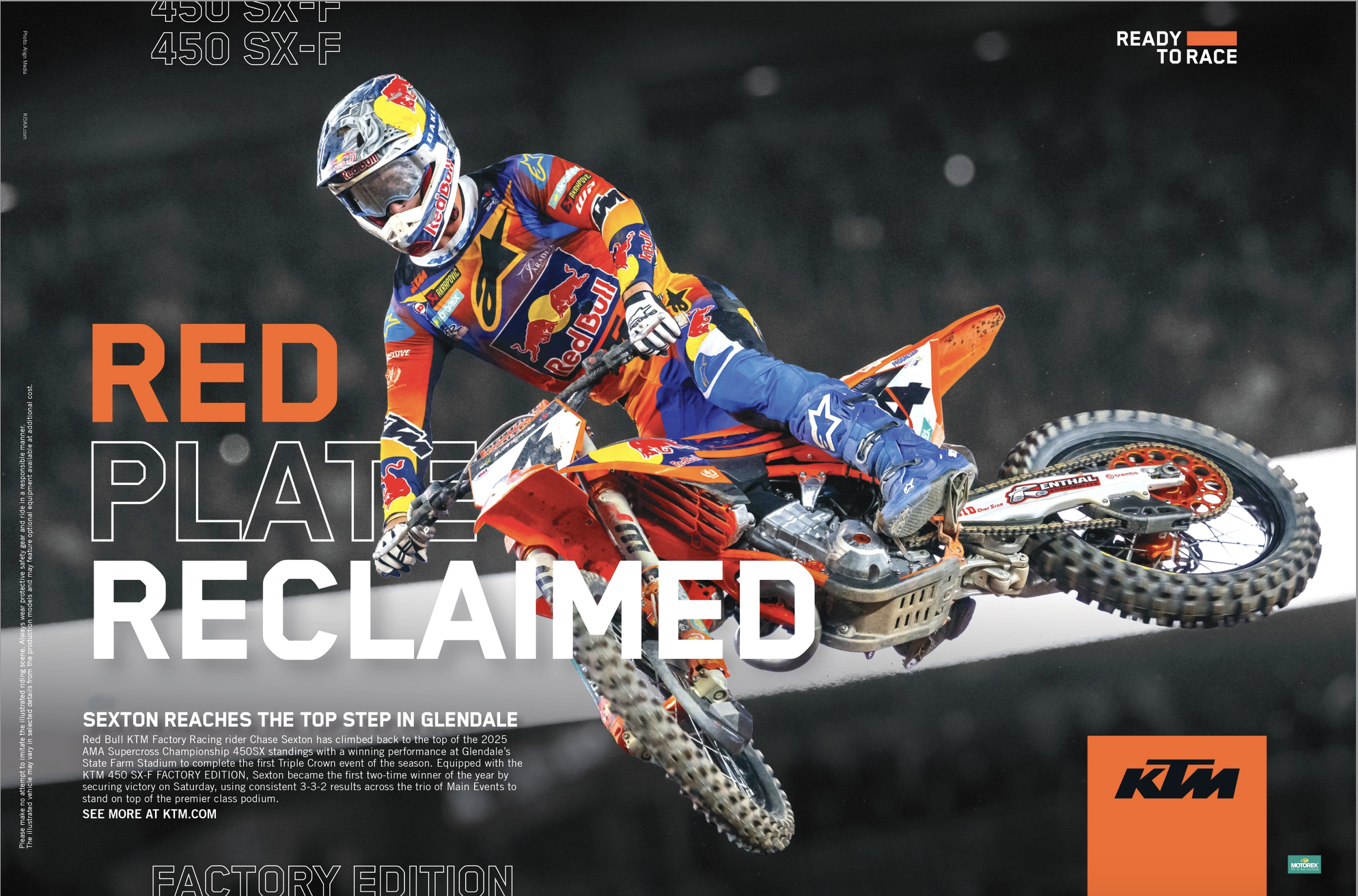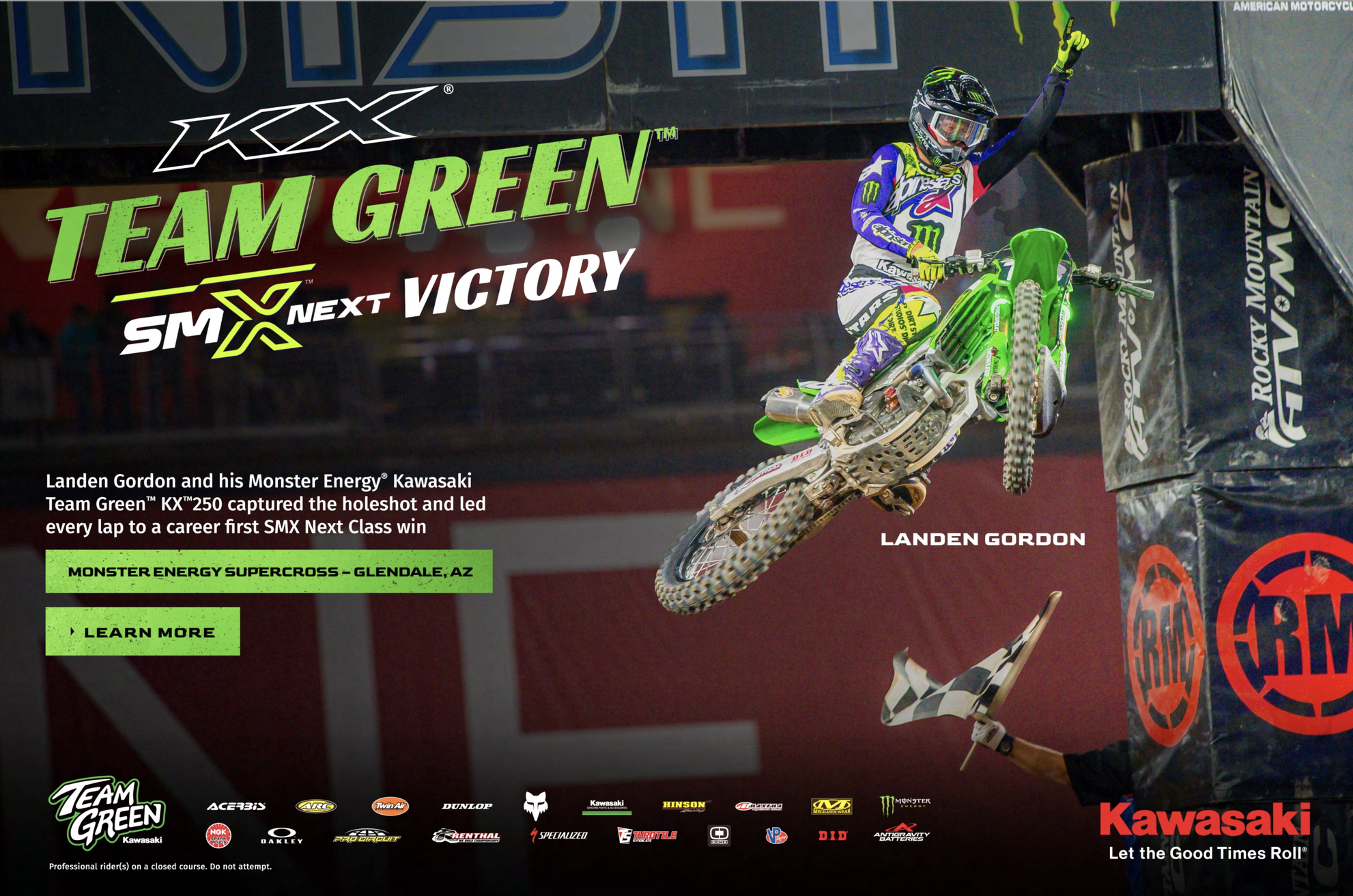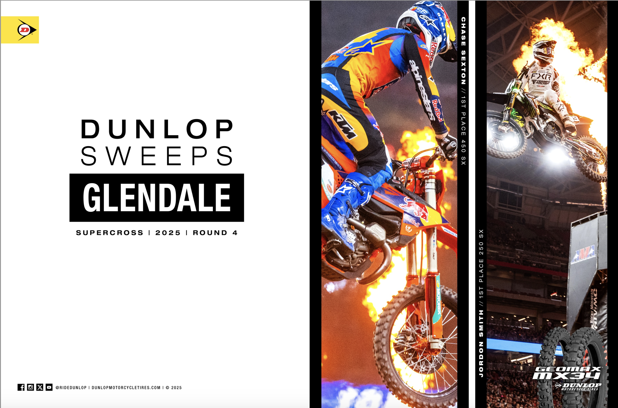 Also, props to Kawasaki for running a win ad for young Landen Gordon, who won the SMX Next race aboard his Kawasaki Team Green KX250, Dubya for a Jordon Smith win ad, Dunlop for winning both class at Glendale to keep that streak going, and of course KTM on Chase Sexton's second win of the season...