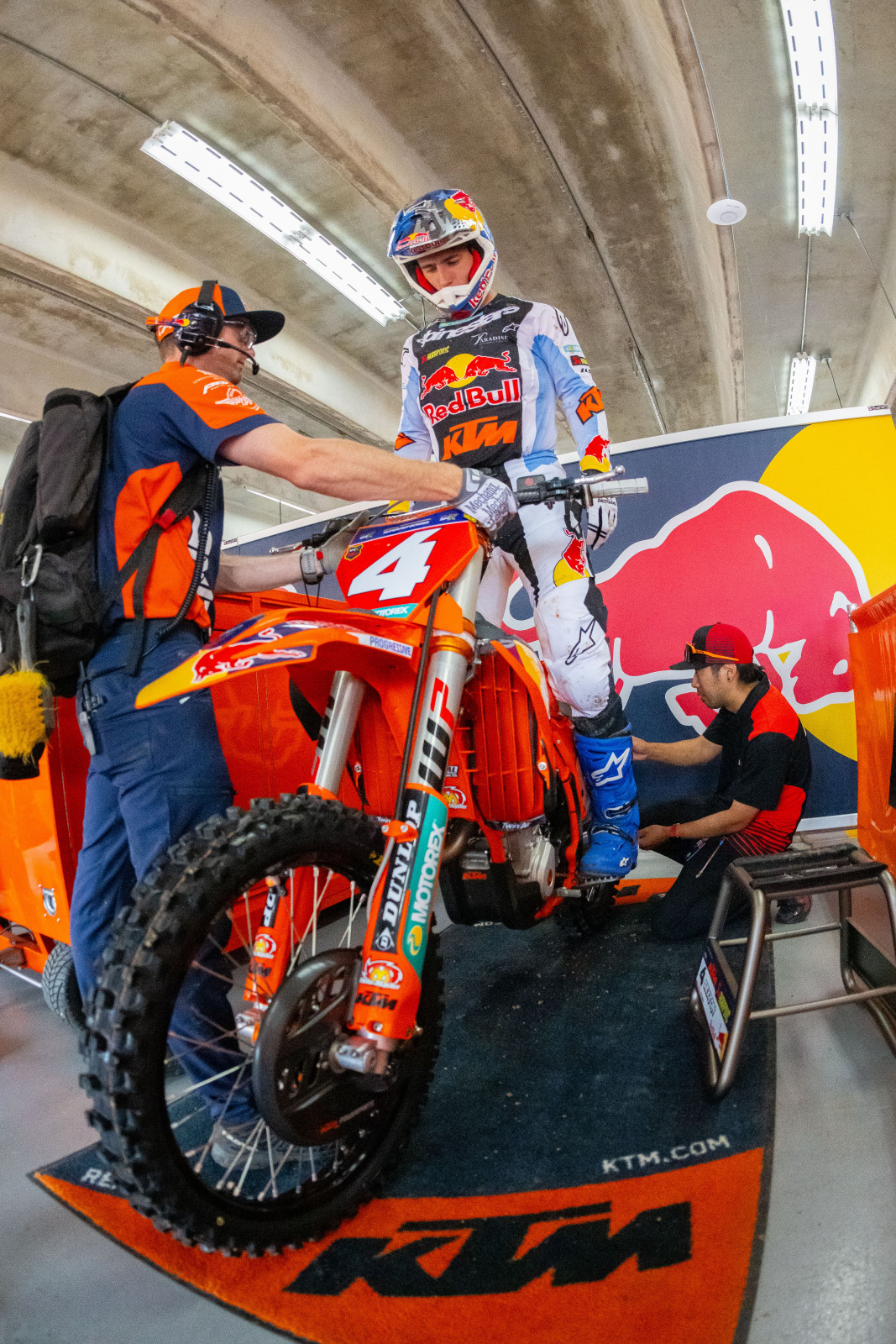 During the week between SMX rounds one and two, Sexton and the team did more testing. They continued to make swings at it during practice and qualifying in Texas. It seemed better. Sexton didn’t complain about the bike for the motos.
