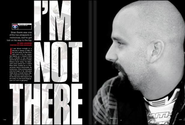 One year later he was racing for Suzuki, repeating as East Region #1. But from there his progress and drive to the top slowed as McGrath's reputation and results catapulted. Within a couple of years Swink was out of a factory ride, and within a couple more he was no longer racing at all. What followed was a slow descent; Swink became more and more withdrawn, alienated from the sport in general. He did the occasional interview, talking about doing "real jobs" like driving a truck and pouring concrete, but he mostly stayed away from the sport in which he was once considered the future. Swink died early this summer after suffering liver failure. When his obituaries were being written by various newspapers and websites, one offered a compliment that Swink would have hated: "People called him the next Jeremy McGrath." Brian Swink was 45 years old.