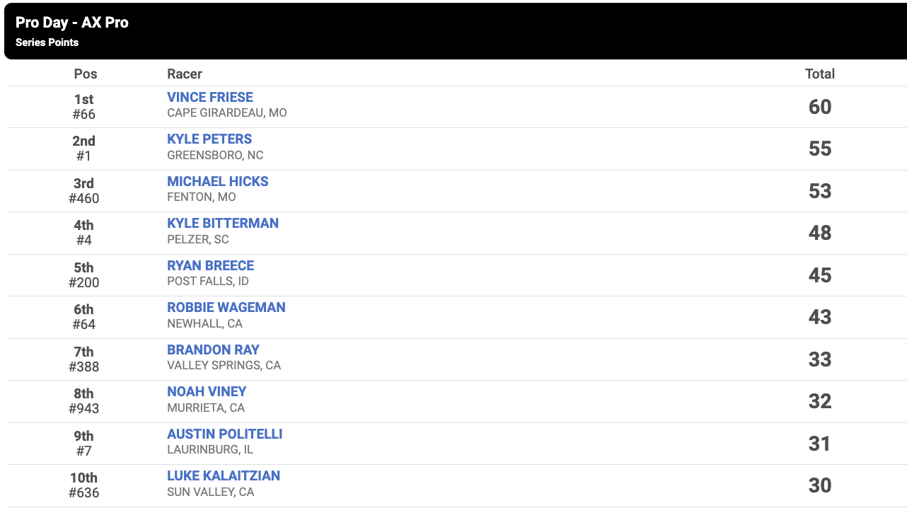 | Chase Sexton (KTM) | AMA Pro Motocross Championship | 450 Class |
