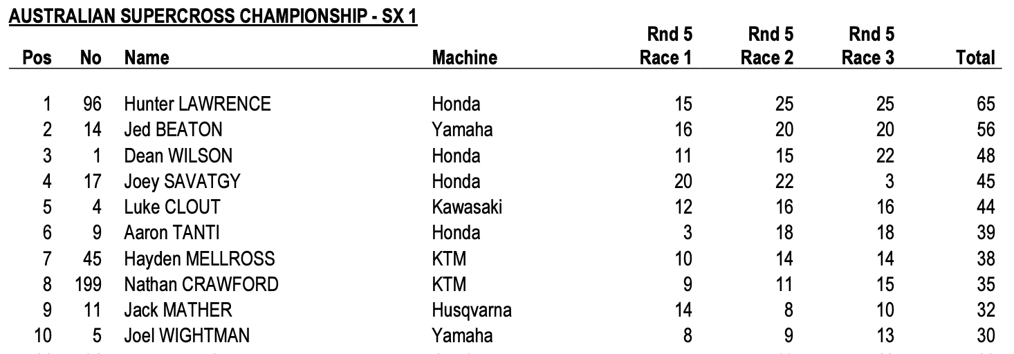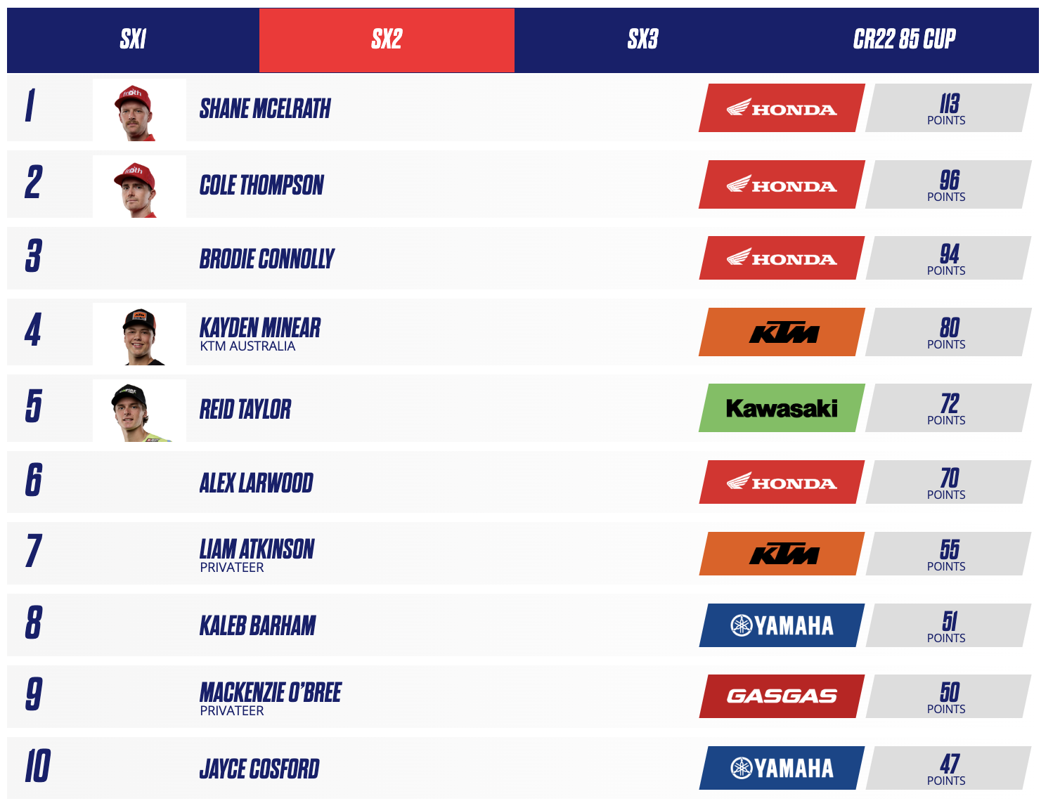 | Hunter Lawrence (Honda) | AUS-X Open | SX1 |