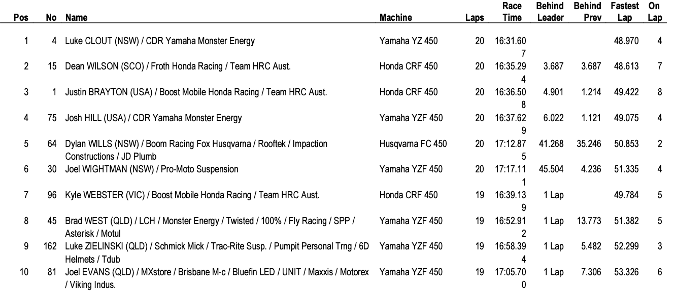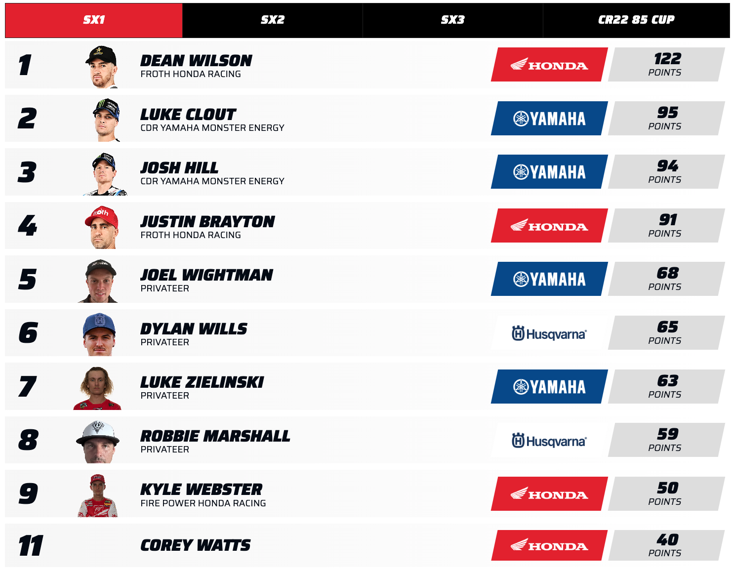 | Dean Wilson (Honda) | Fox Australian Supercross Championship | SX1 |