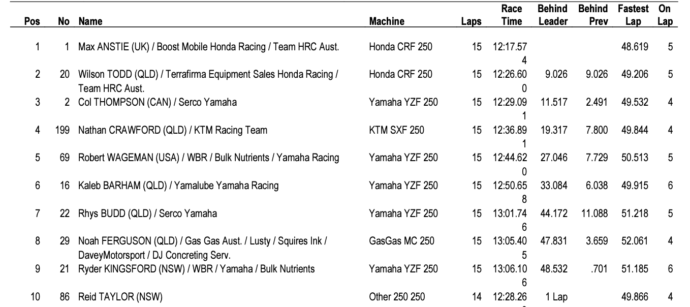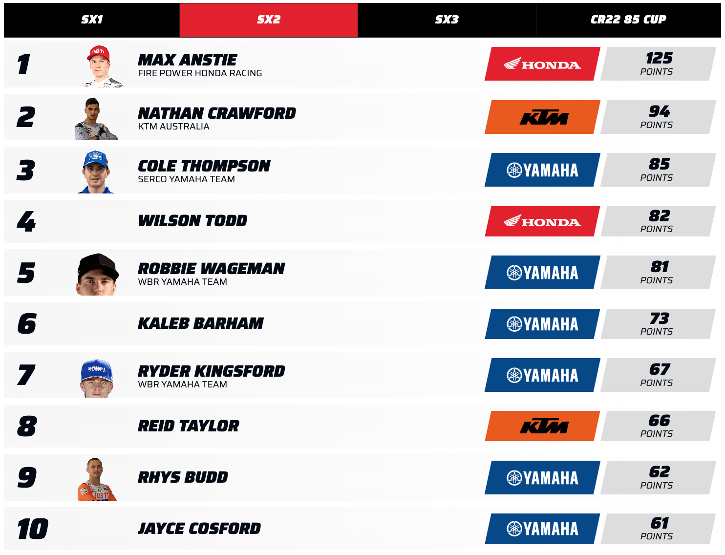 | Max Anstie (Honda) | Fox Australian Supercross Championship | SX2 |