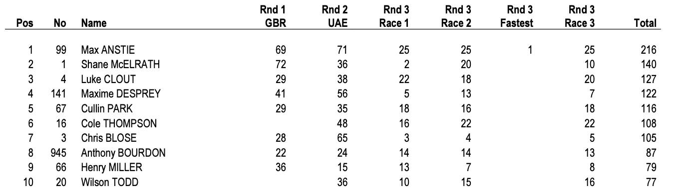 | Max Anstie (Honda) | FIM World Supercross Championship (WSX) | SX2 |