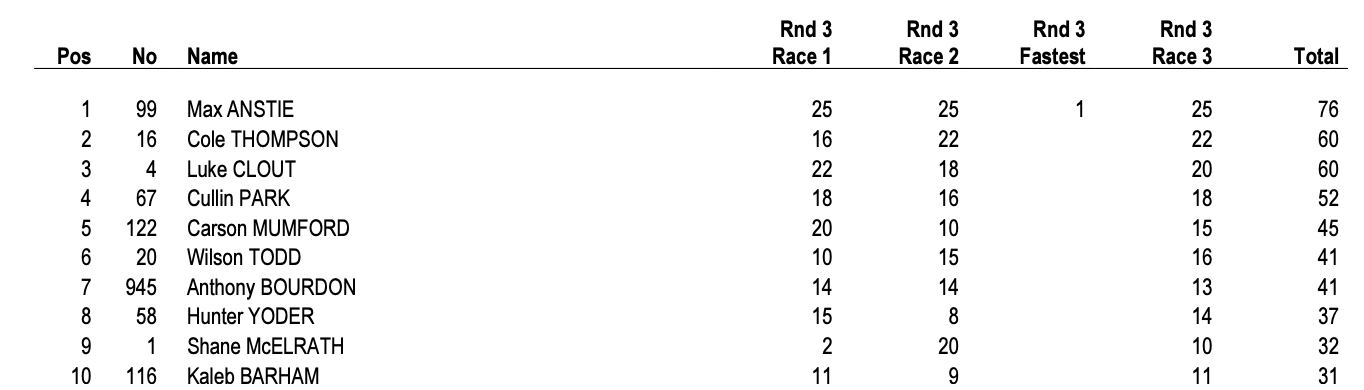 | Toby Cleveland (Husqvarna) | GNCC | XC3 |