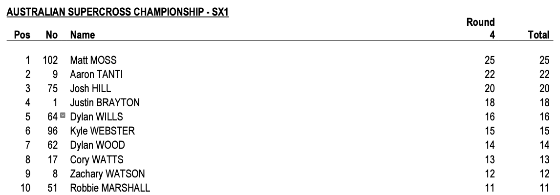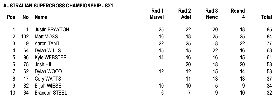 | Justin Brayton (Honda) | Fox Australian Supercross Championship | SX1 |