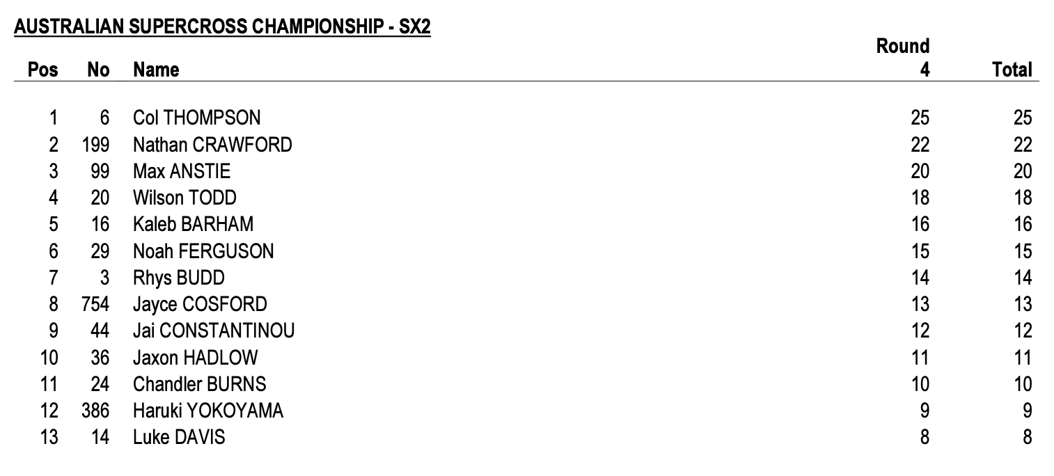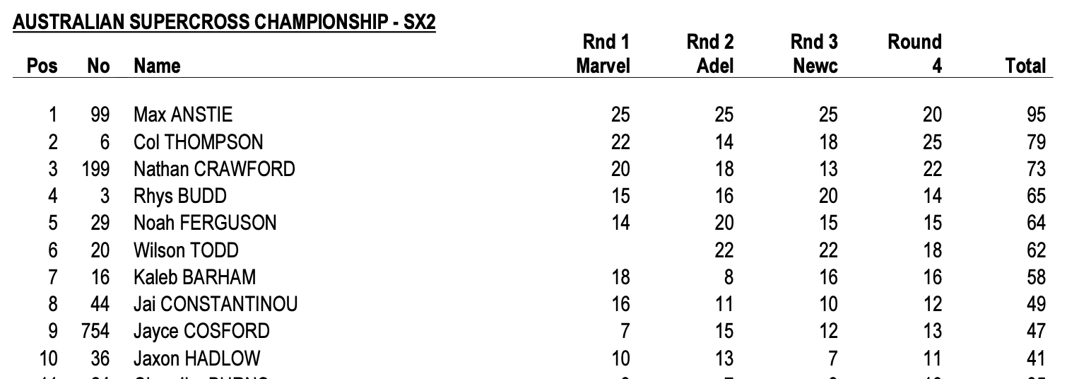 | Max Anstie (Honda) | Fox Australian Supercross Championship | SX2 |