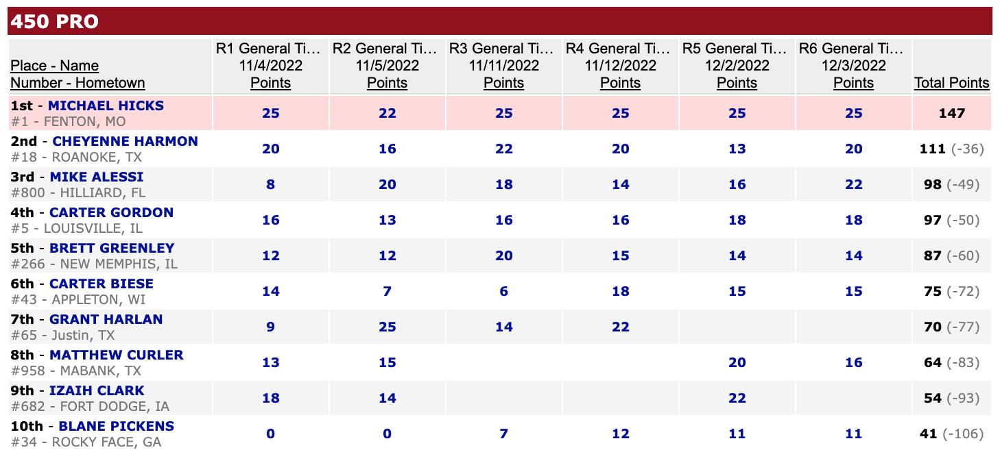 | Michael Hicks (KTM) | Hoosier Arenacross Series | 450 Pro |