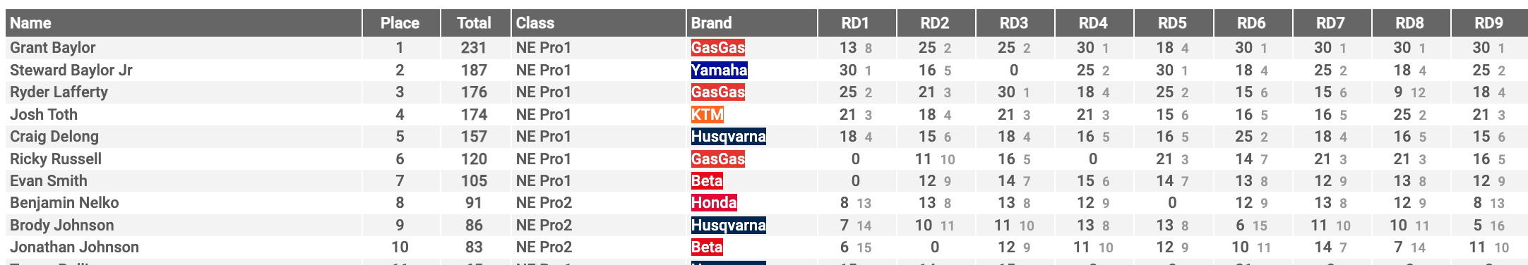 | Josh Toth (KTM) | U.S. Sprint Enduro | Pro |