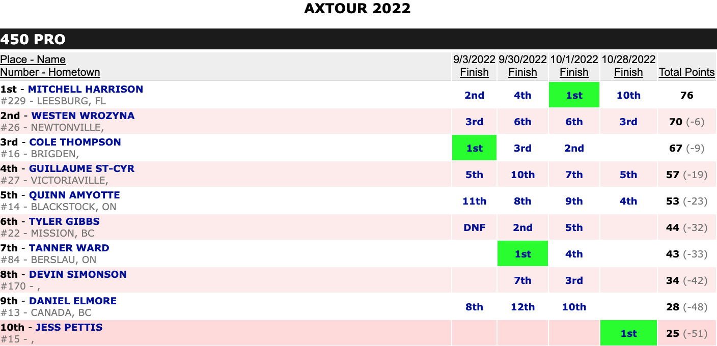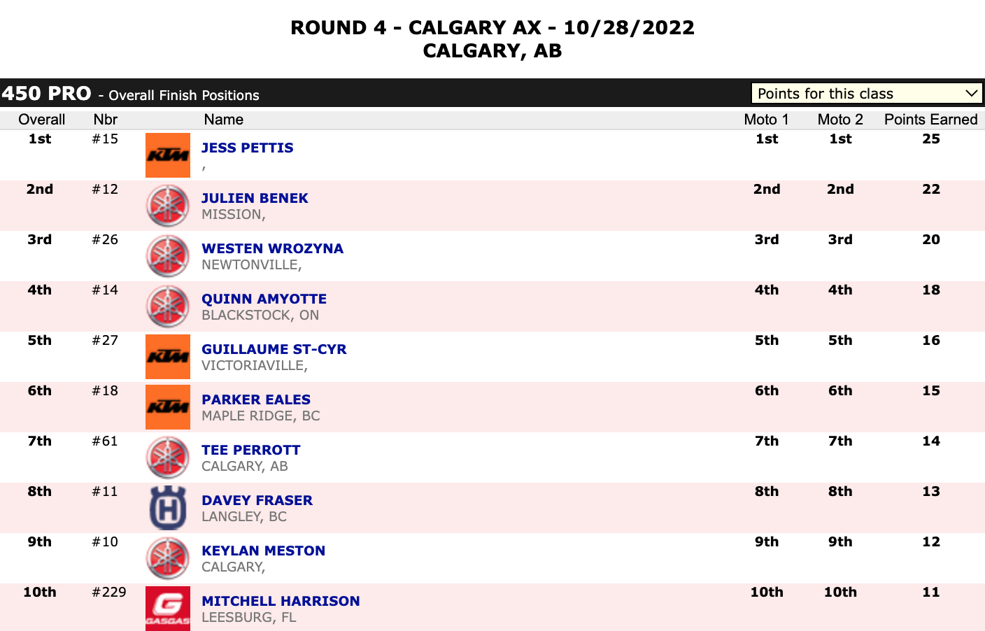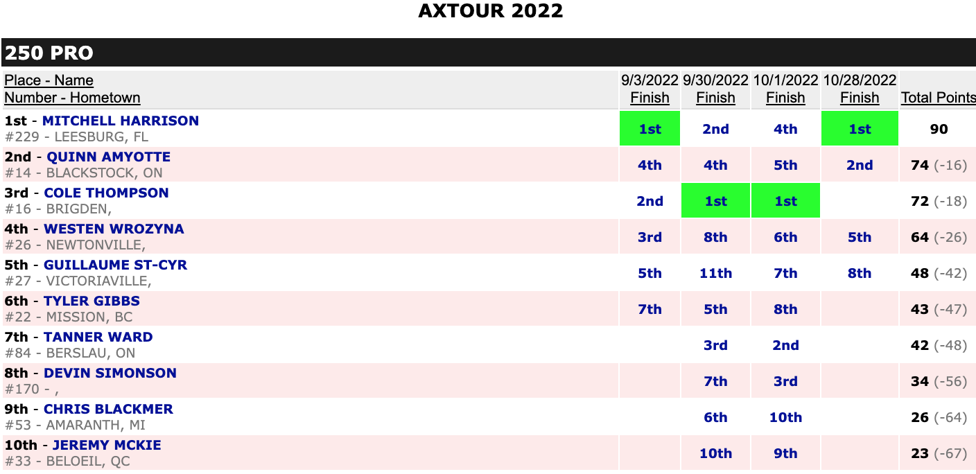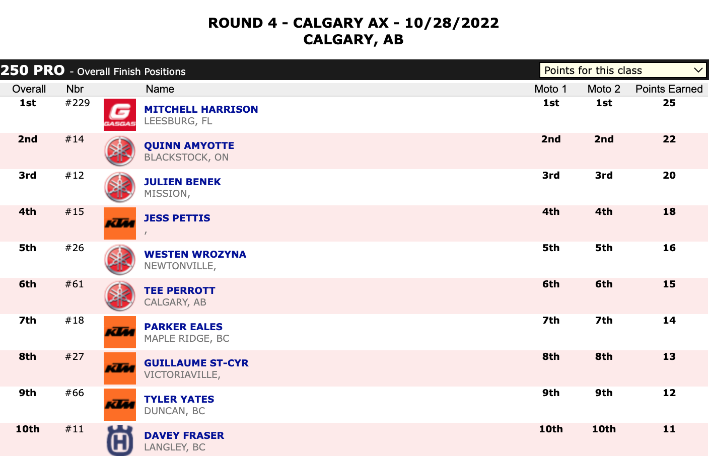 | Mitchell Harrison (GasGas) | Canadian Triple Crown (Combined) | 250 |