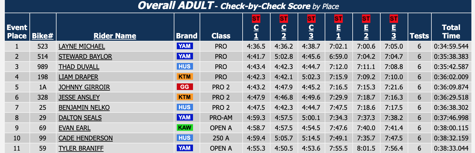 | Layne Michael | U.S. Sprint Enduro | Pro |