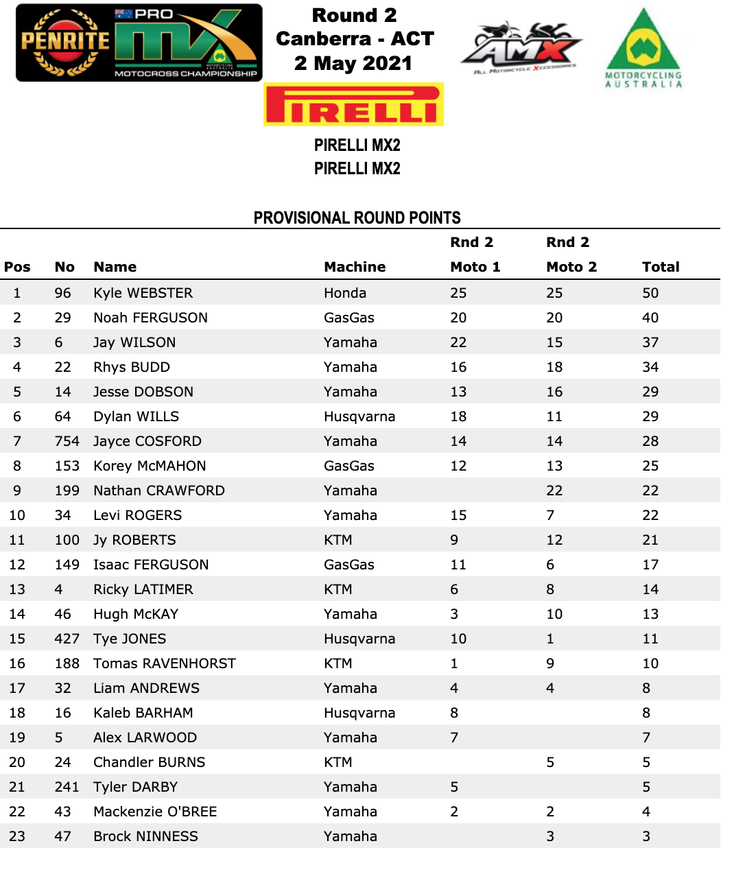 | Kyle Webster | Penrite ProMX Championship | MX2 |