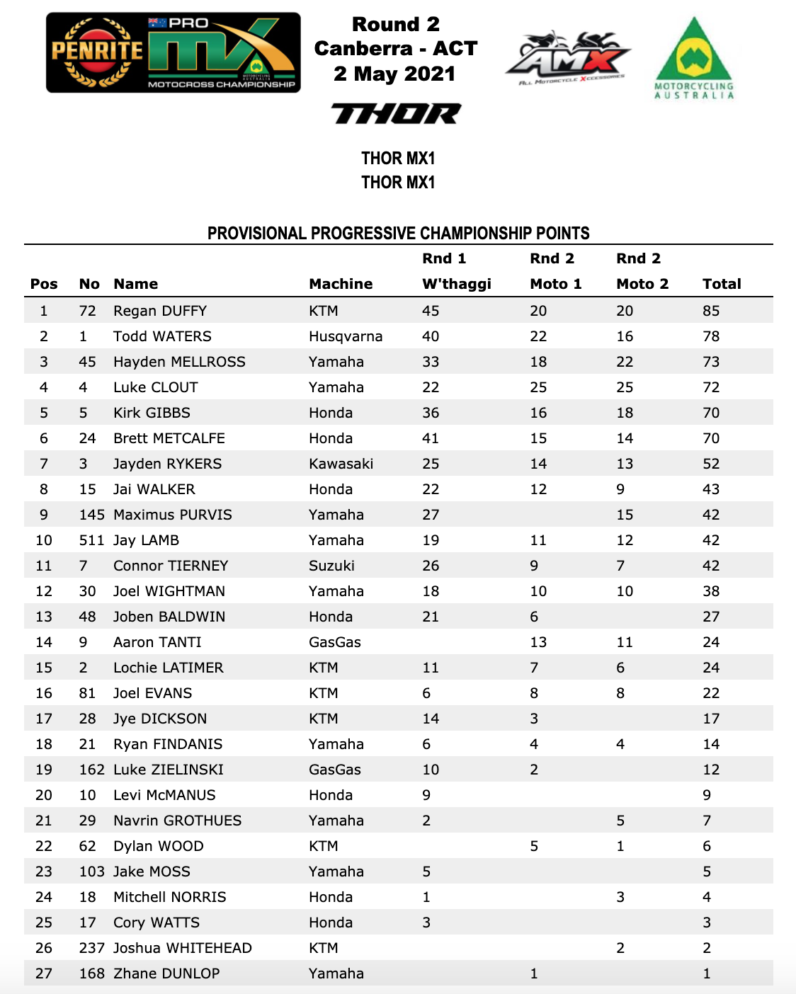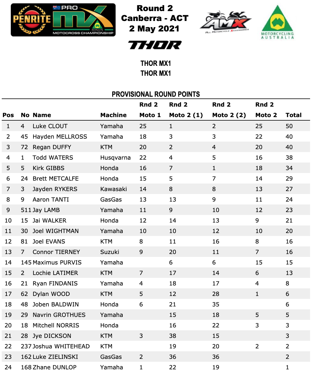 | Luke Clout | Penrite ProMX Championship | MX1 |