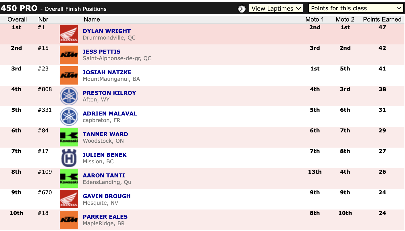 | Jess Pettis (KTM) | Canadian Triple Crown (Motocross) | 450 |
