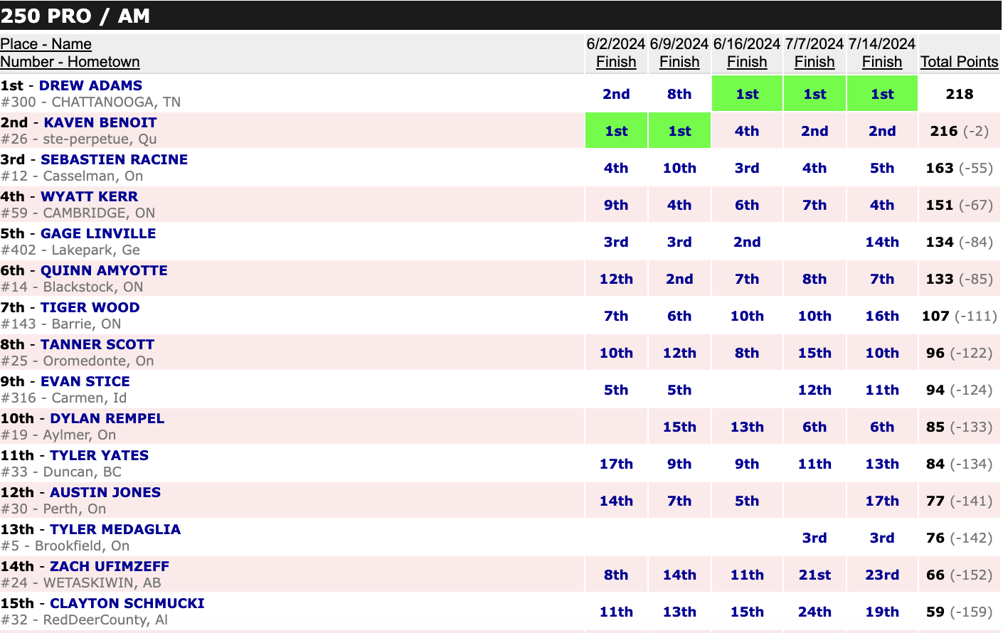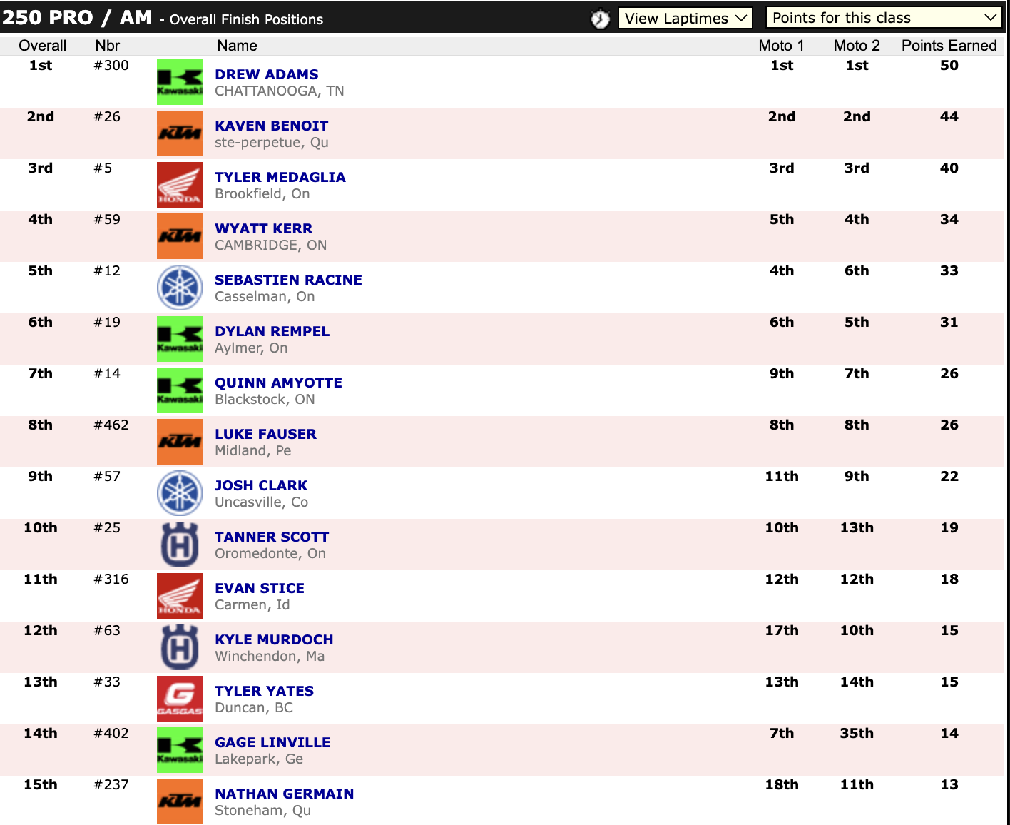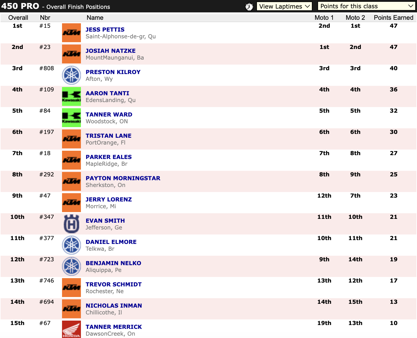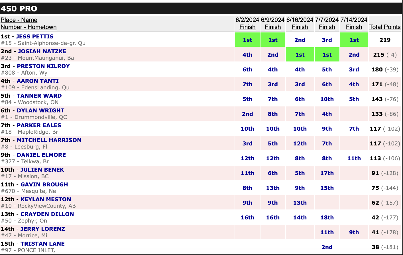 July 13, 2024| Rider | Hometown | Motos | Bike | |