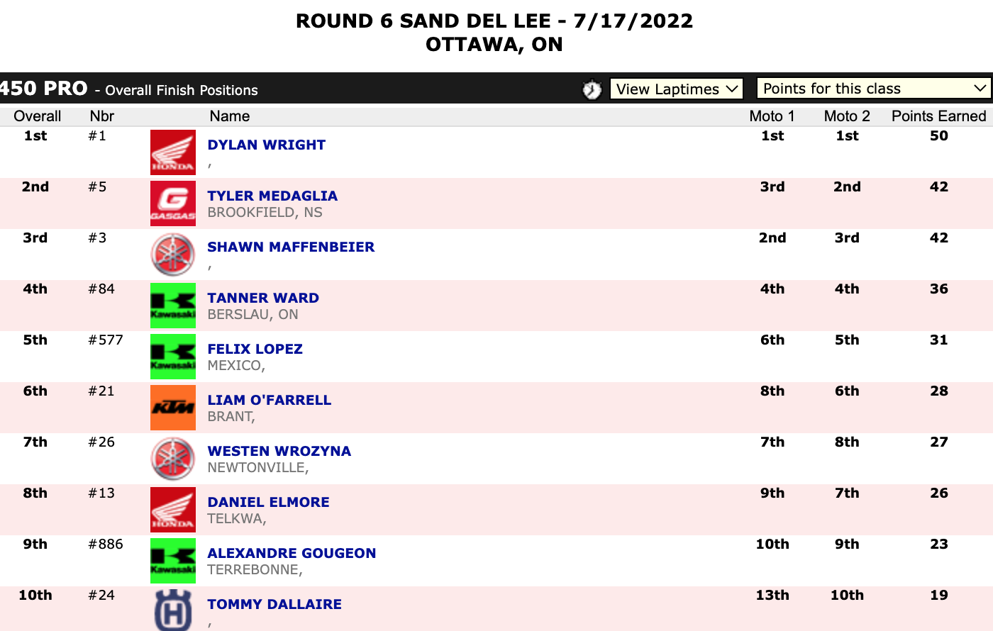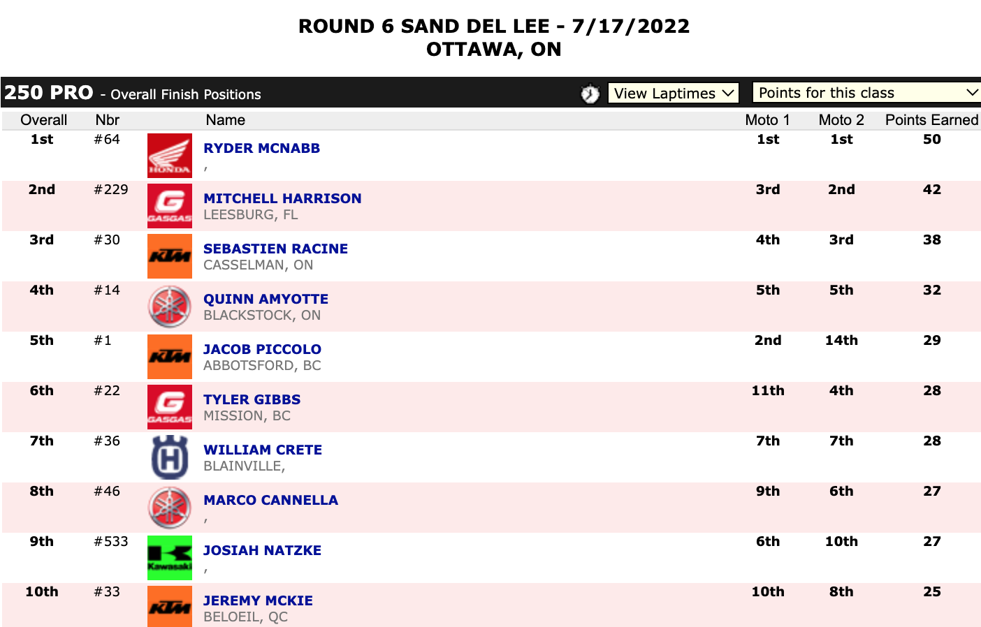Round 6 (of 9) of MX Tour — Sand Del Lee — Ottawa, Canada