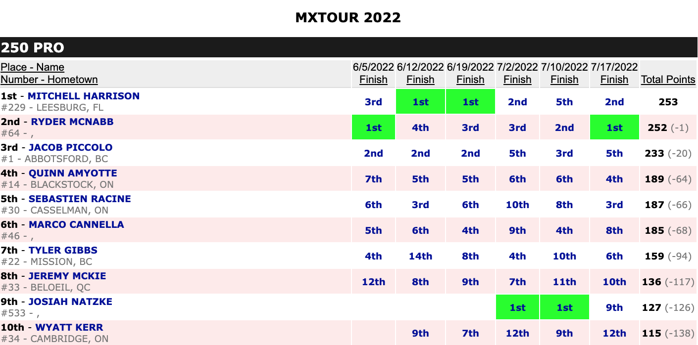 | Mitchell Harrison (GasGas) | Canadian Triple Crown (Combined) | 250 |