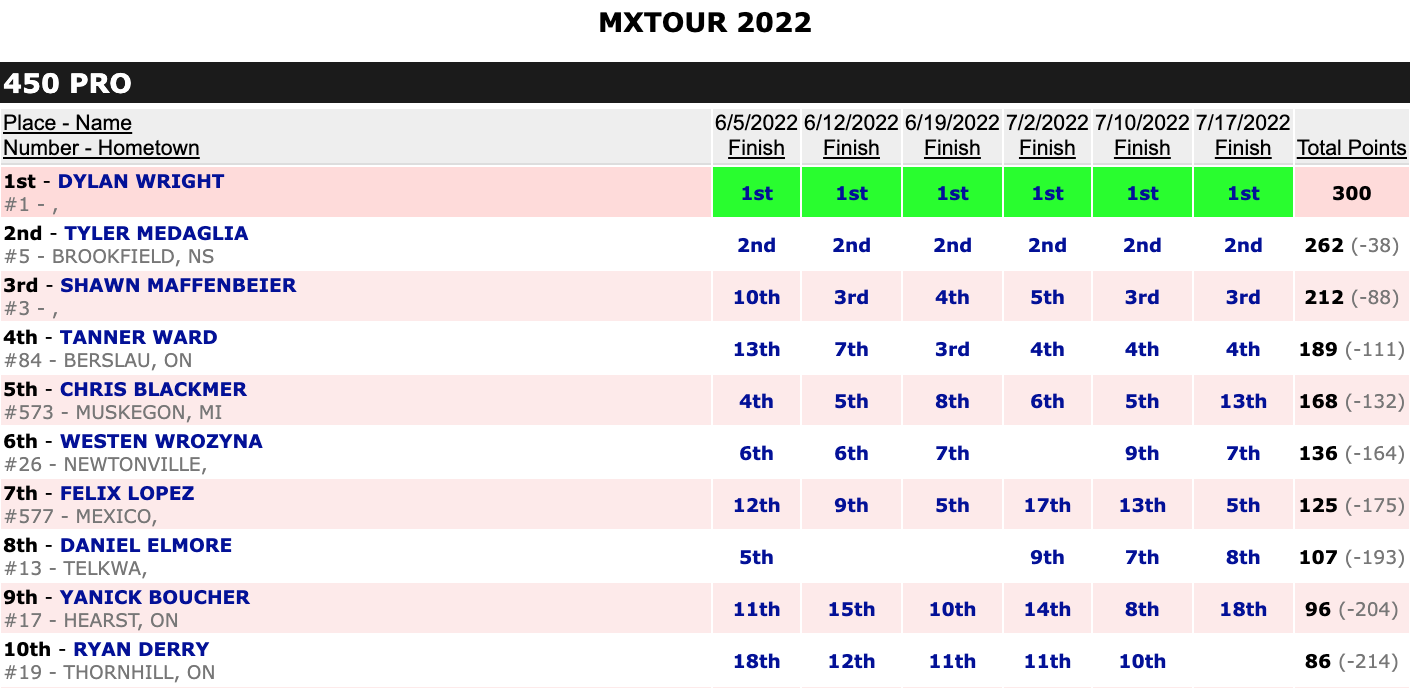 | Dylan Wright (Honda) | Canadian Triple Crown (Combined) | 450 |